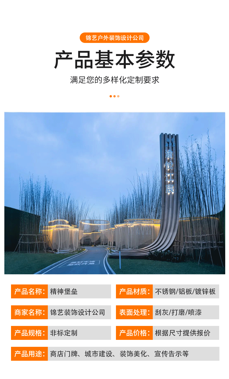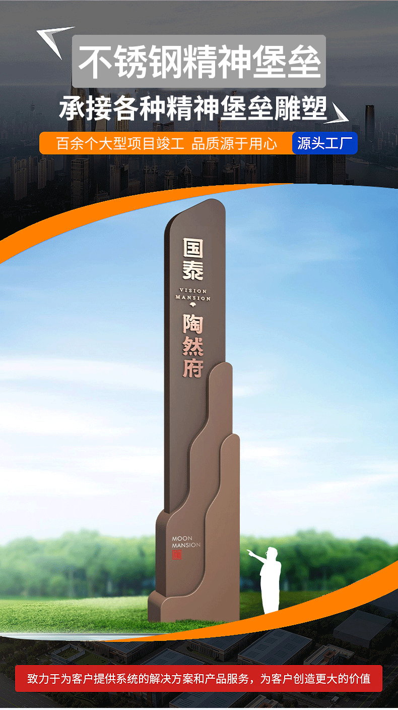 스테인리스 스틸 정신적 요새 조각품 경관 주차장 농촌 개발 도로 표지판 창의적인 랜드마크 조각품