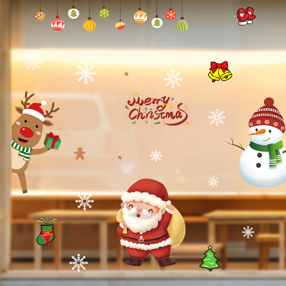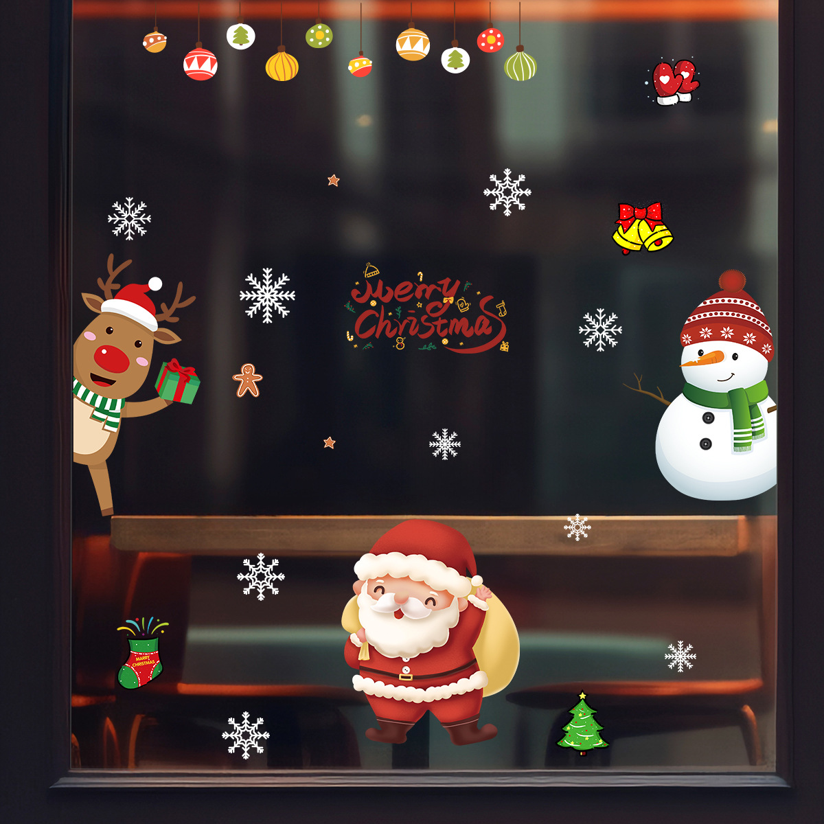 산타 클로스 무스 눈사람 자기 접착 창 스티커 유리 장식 스티커 완전히 투명한 UV 양면 비주얼 BR0701Q스토어 가기