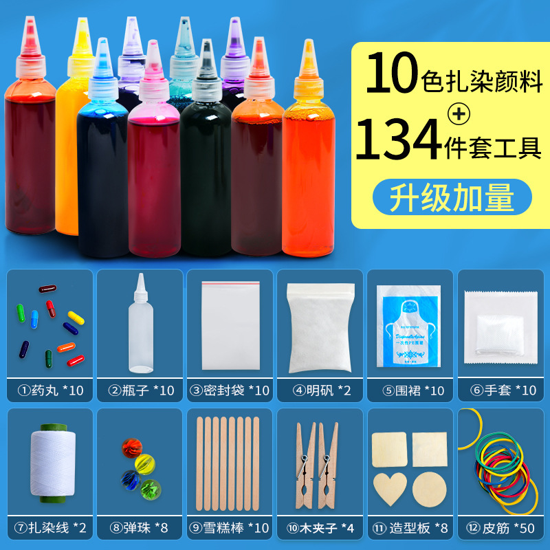 • 10가지 색상의 물감 + 134피스 타이다이 도구 세트