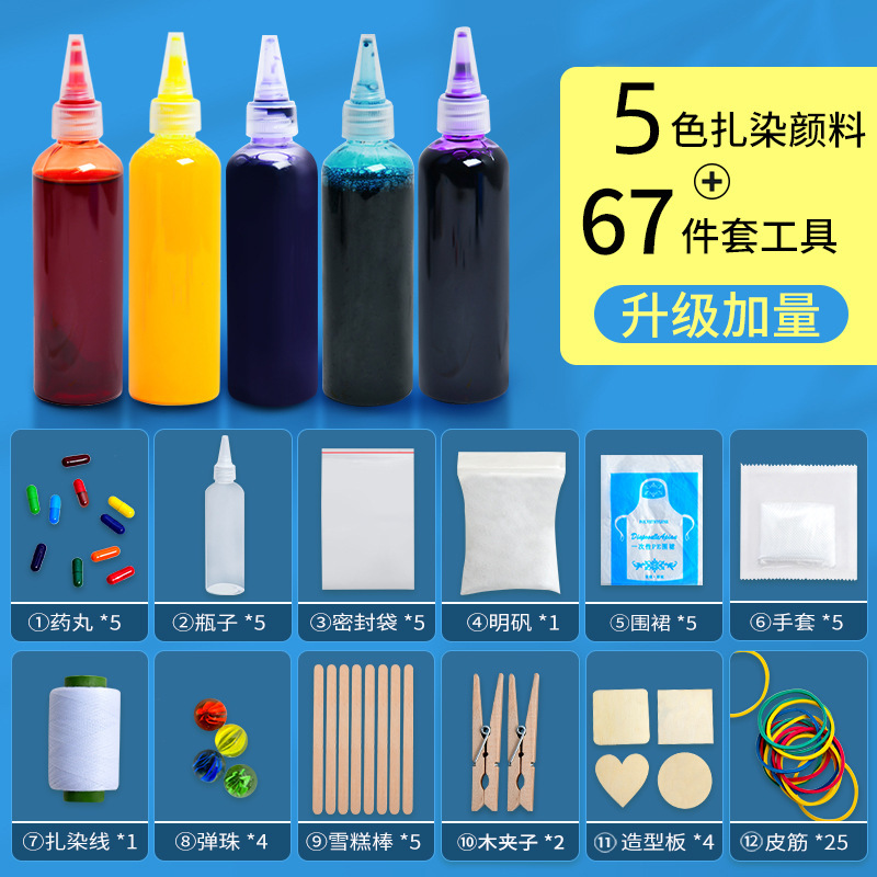 • 5가지 색상의 물감 + 67피스 타이다이 도구 세트