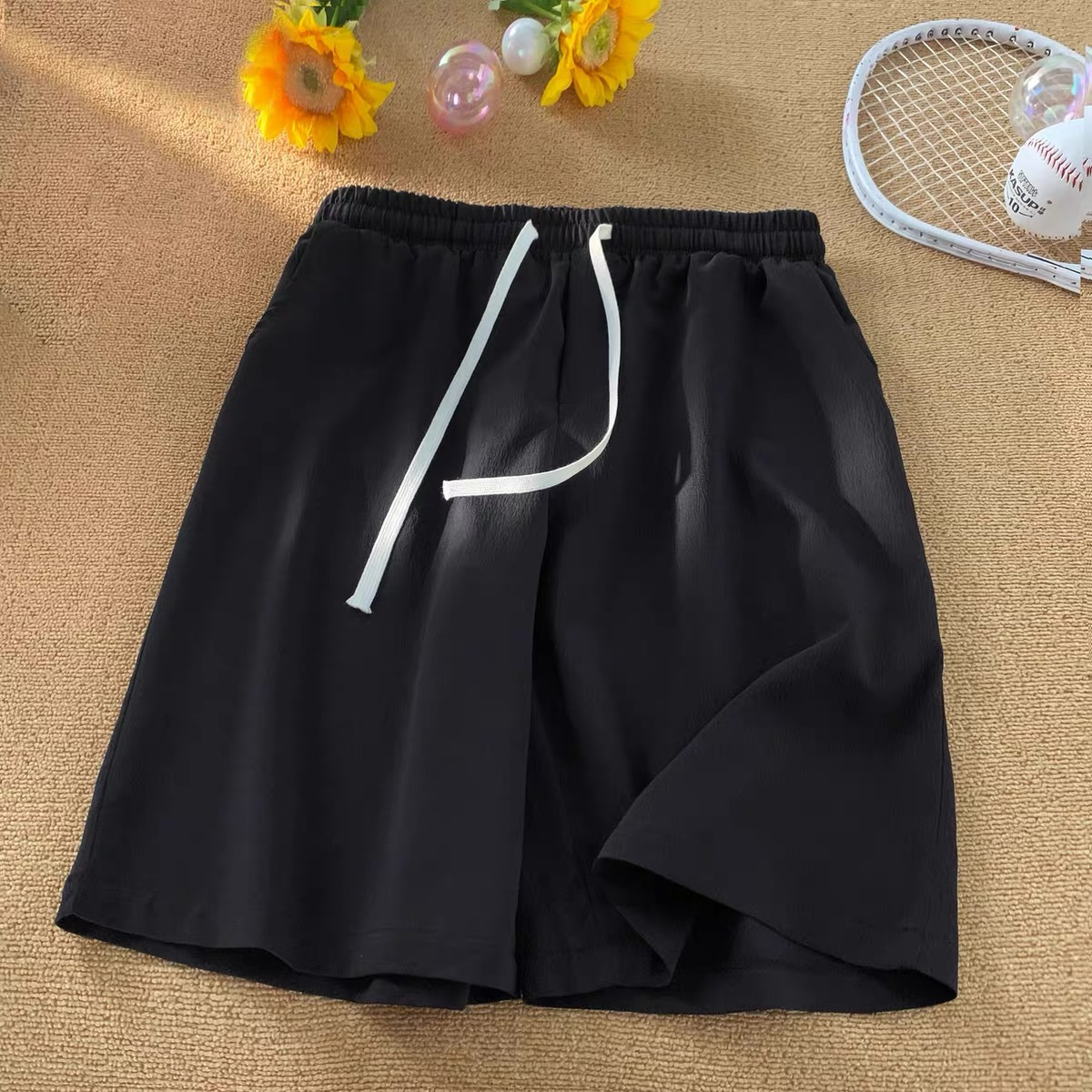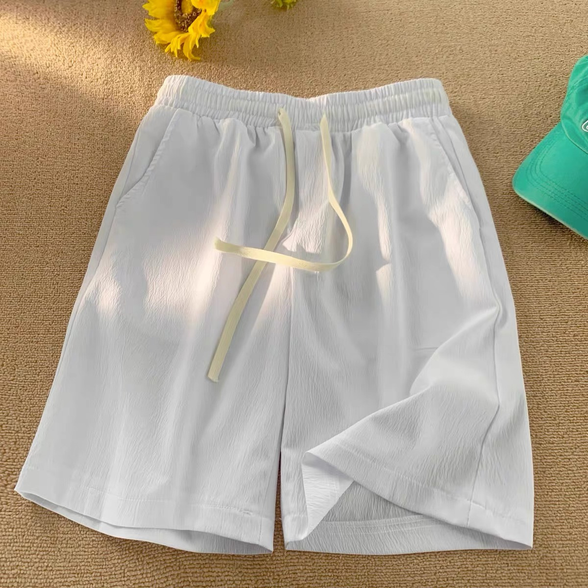 여름 게으른 바람 다섯 스포츠 넓은 다리 바지 단색 느슨한 직선 얇은 빠른 건조 비치 바지 머리카락