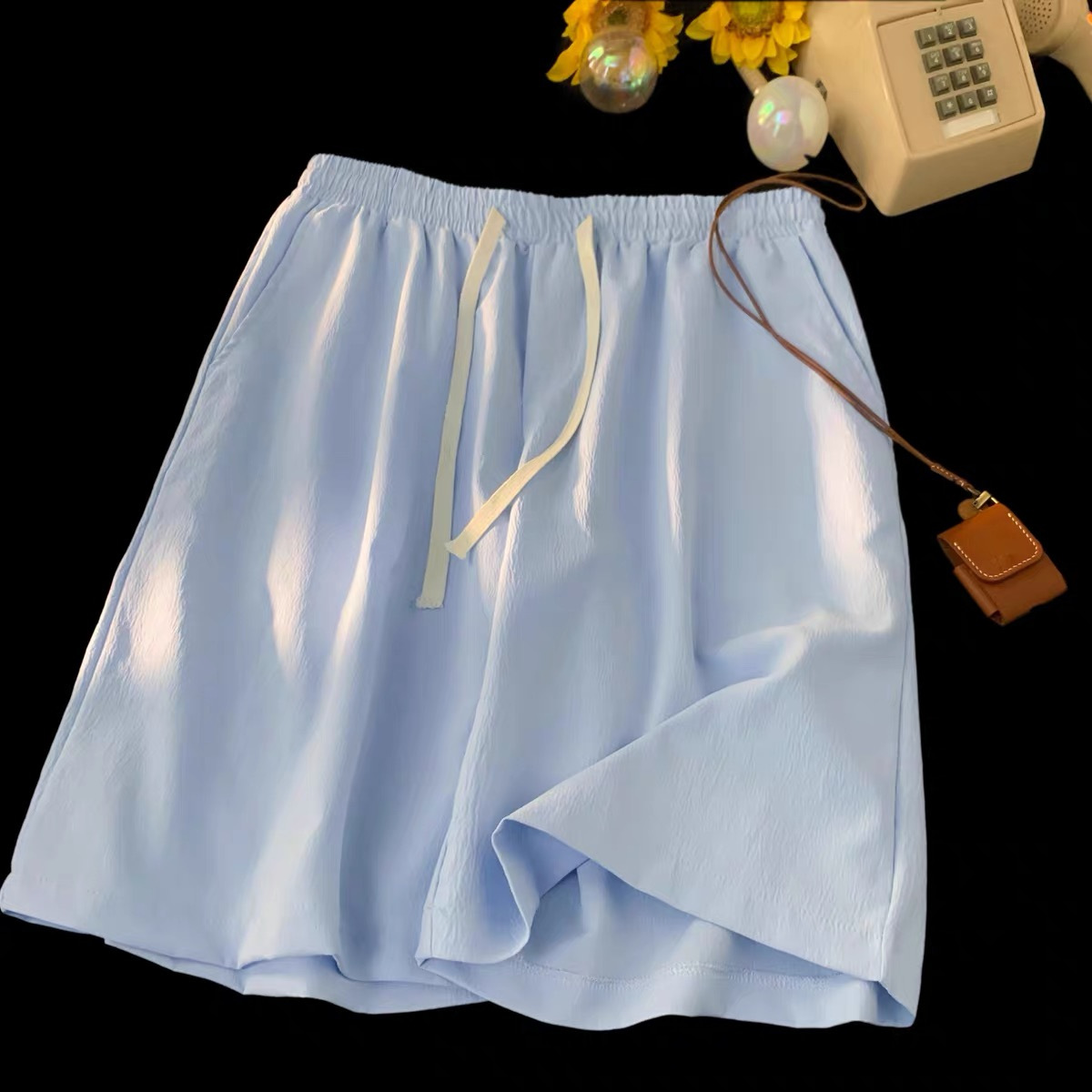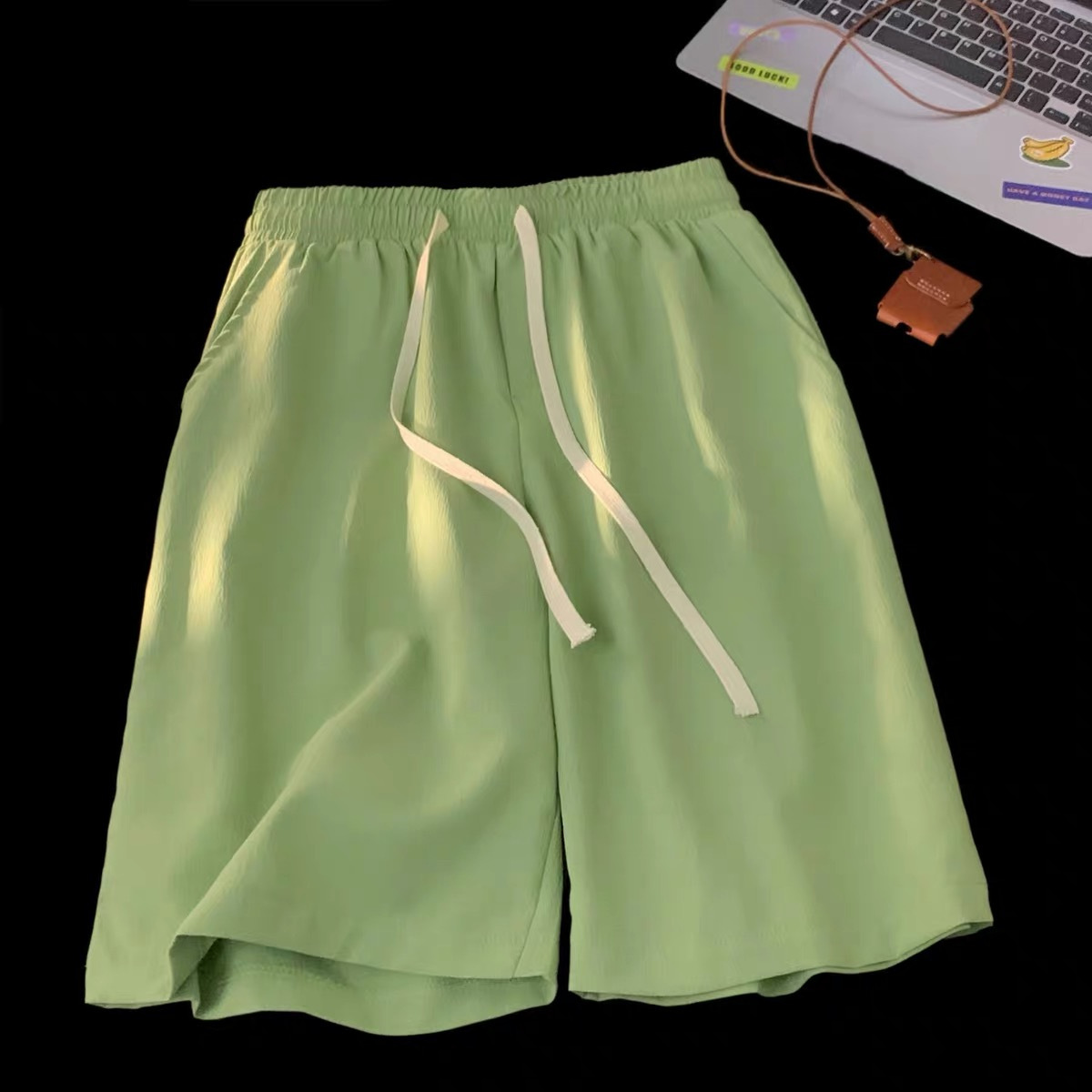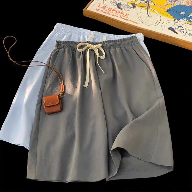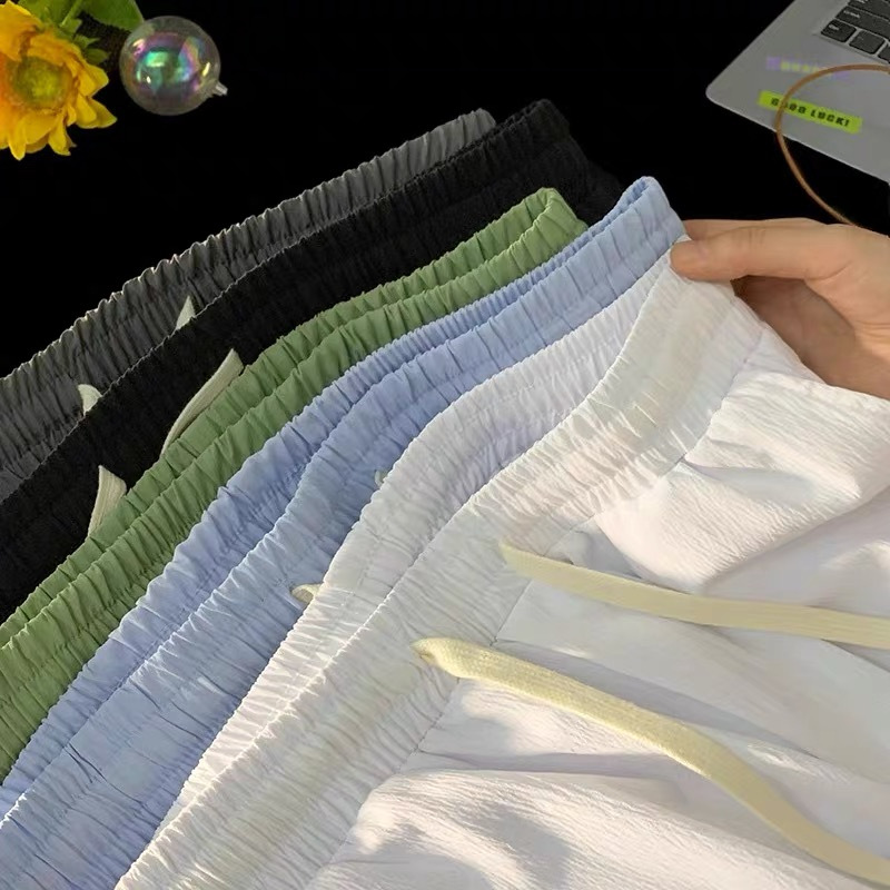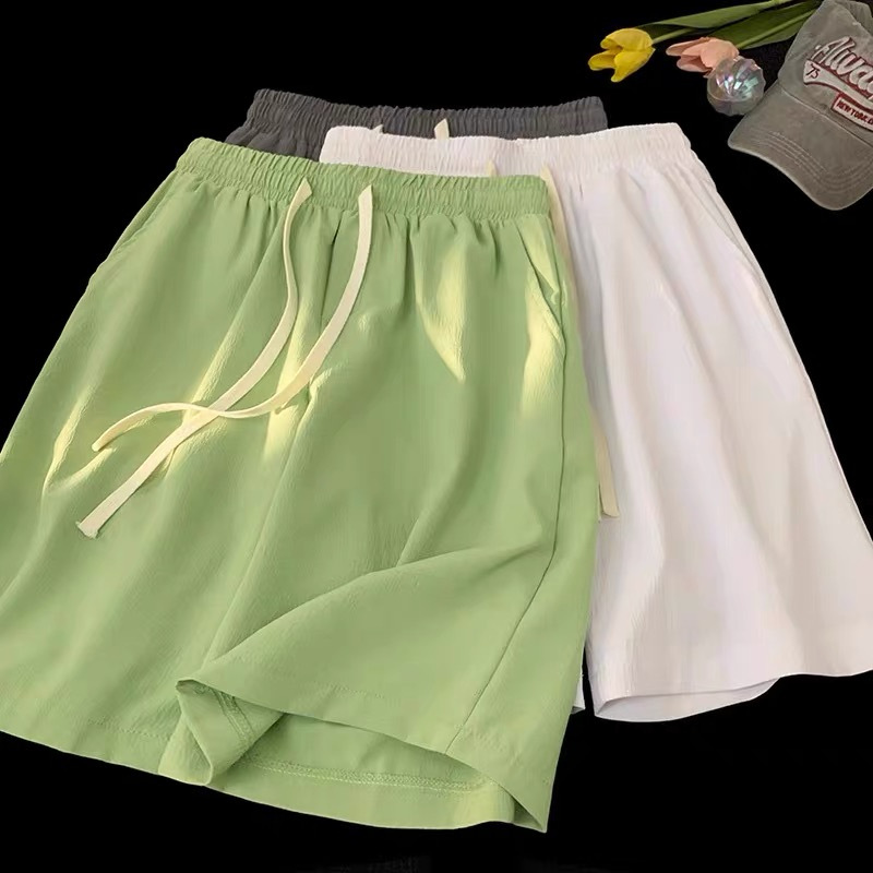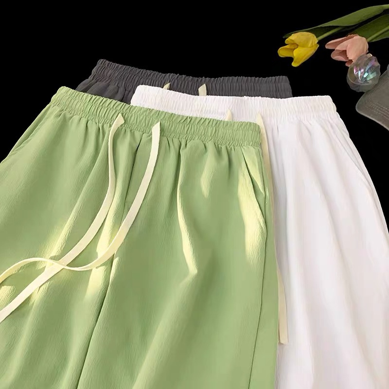 여름 게으른 바람 다섯 스포츠 넓은 다리 바지 단색 느슨한 직선 얇은 빠른 건조 비치 바지 머리카락스토어 가기