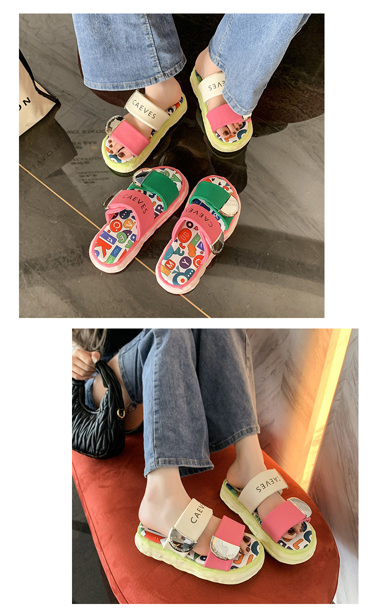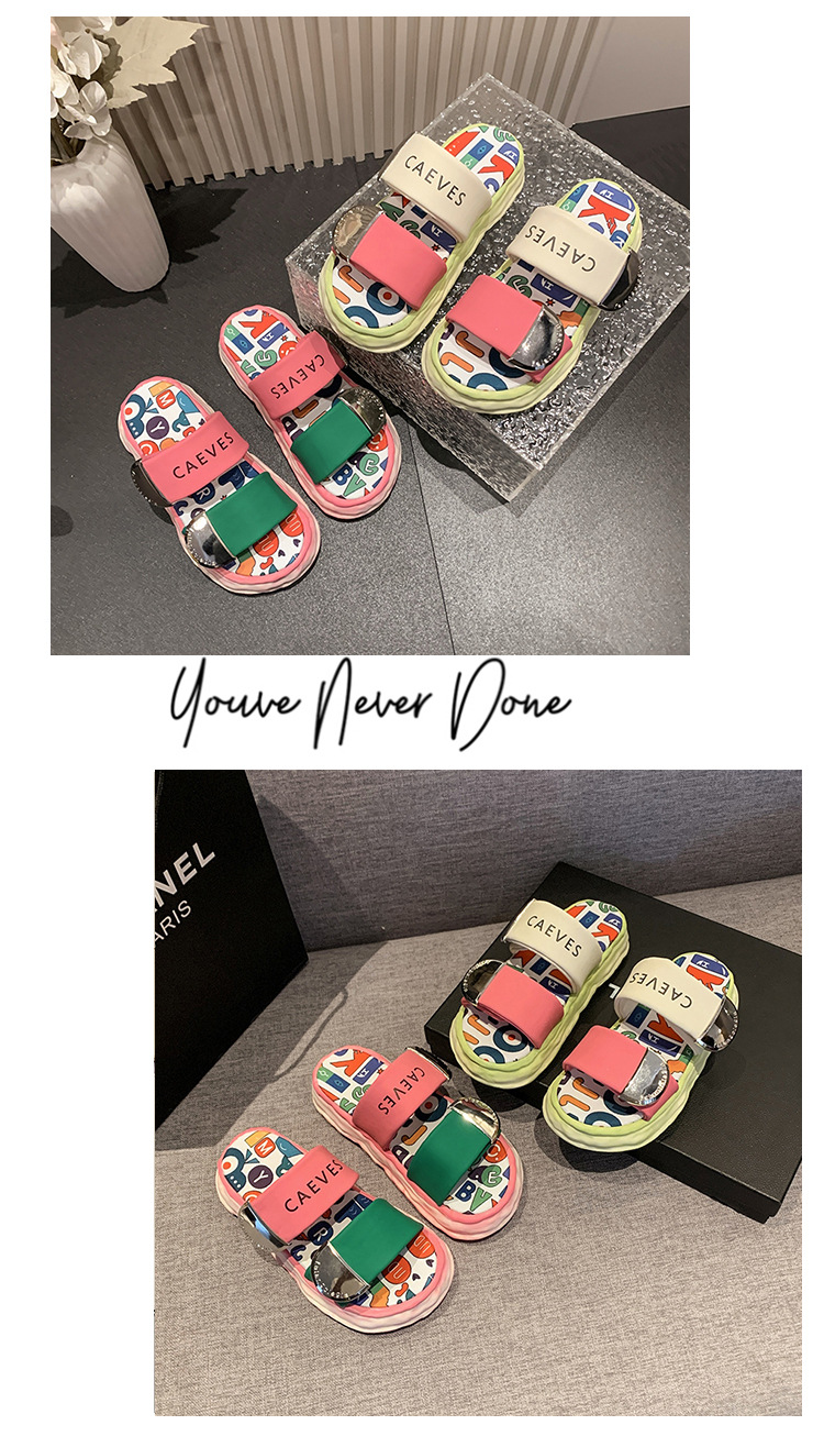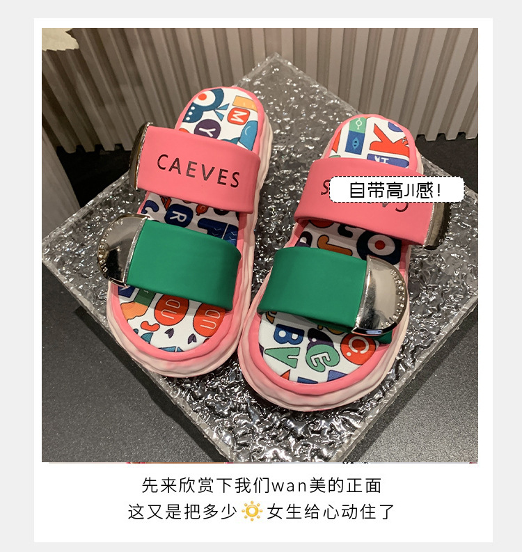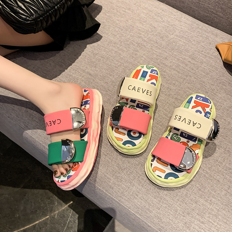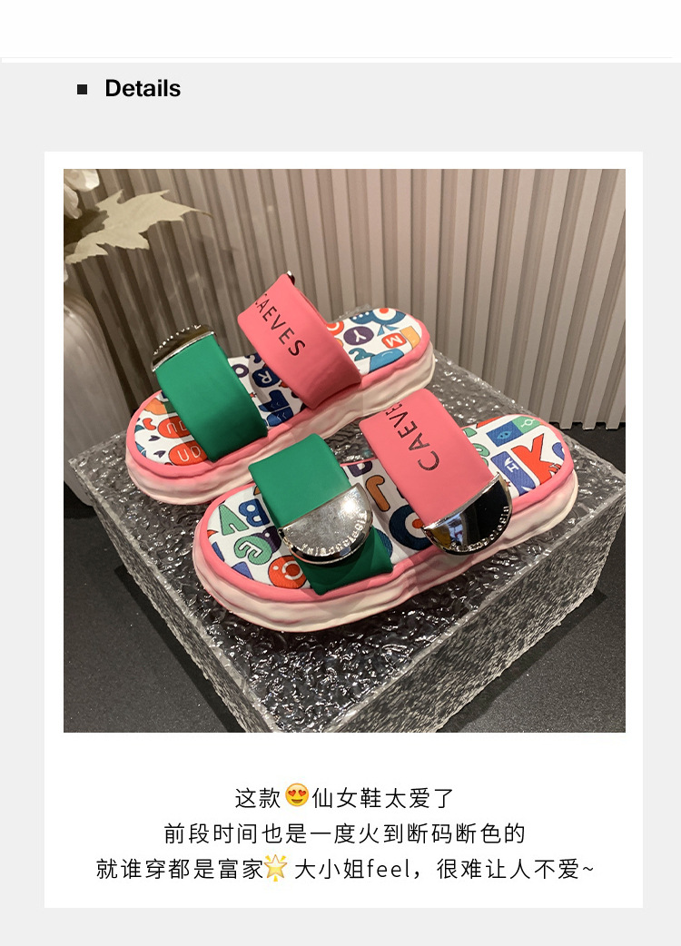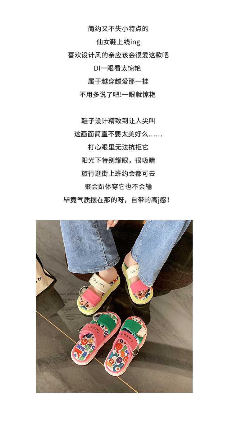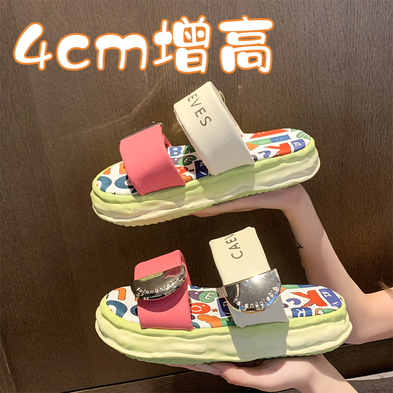 유행 높이 올리는 두꺼운 밑창 샌들 및 슬리퍼 여성의 2024 새로운 복장 Dung Graffiti Niche Beach 샌들