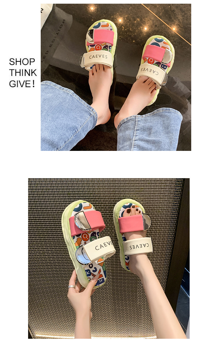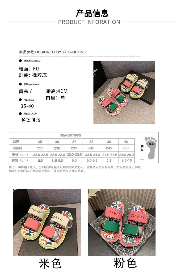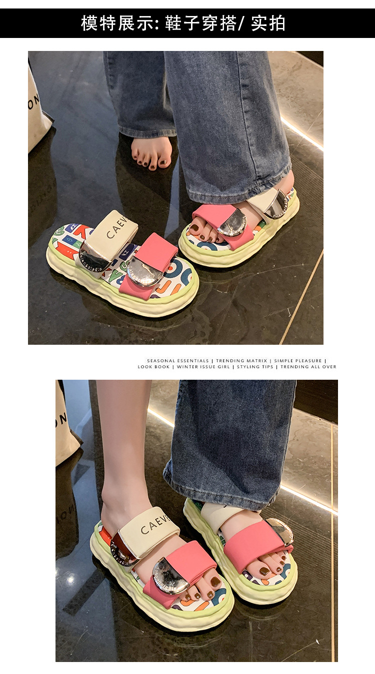 유행 높이 올리는 두꺼운 밑창 샌들 및 슬리퍼 여성의 2024 새로운 복장 Dung Graffiti Niche Beach 샌들스토어 가기