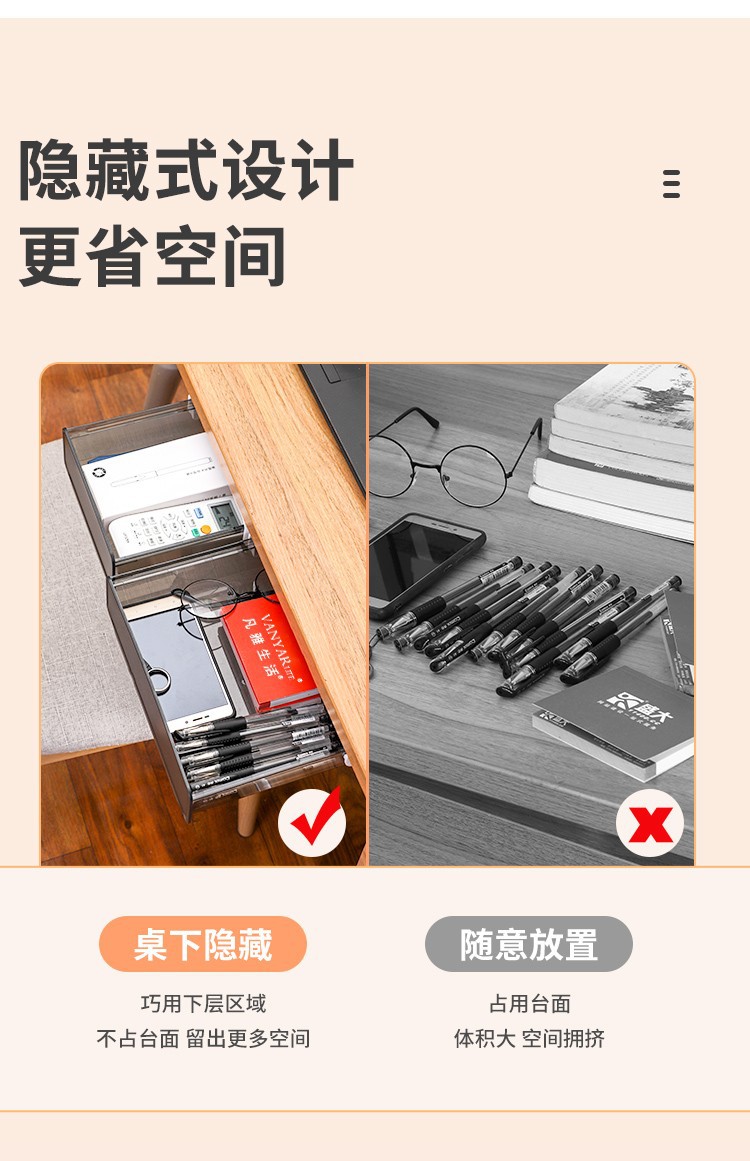 언더 데스크 서랍 유형 저장 상자 보이지 않는 서랍 상자 책상 바닥 접착 투명 서랍 유형 저장 상자