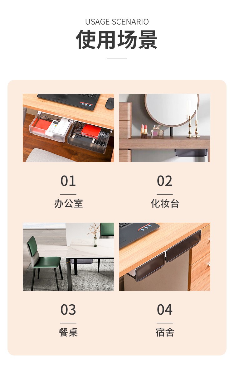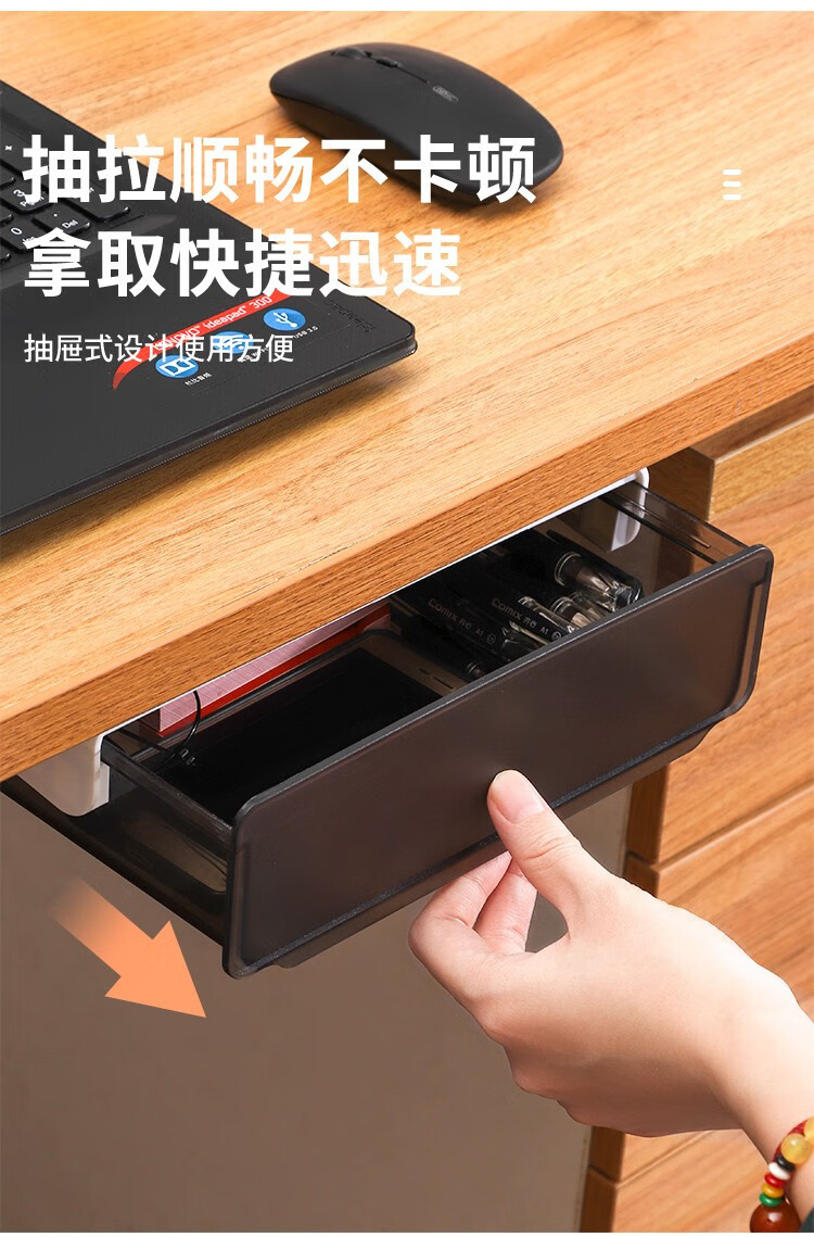 언더 데스크 서랍 유형 저장 상자 보이지 않는 서랍 상자 책상 바닥 접착 투명 서랍 유형 저장 상자스토어 가기