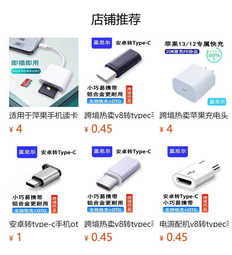 Apple 남성 어댑터 충전 데이터 어댑터 ABS 셸에 Android typec 여성 전용 국경스토어 가기