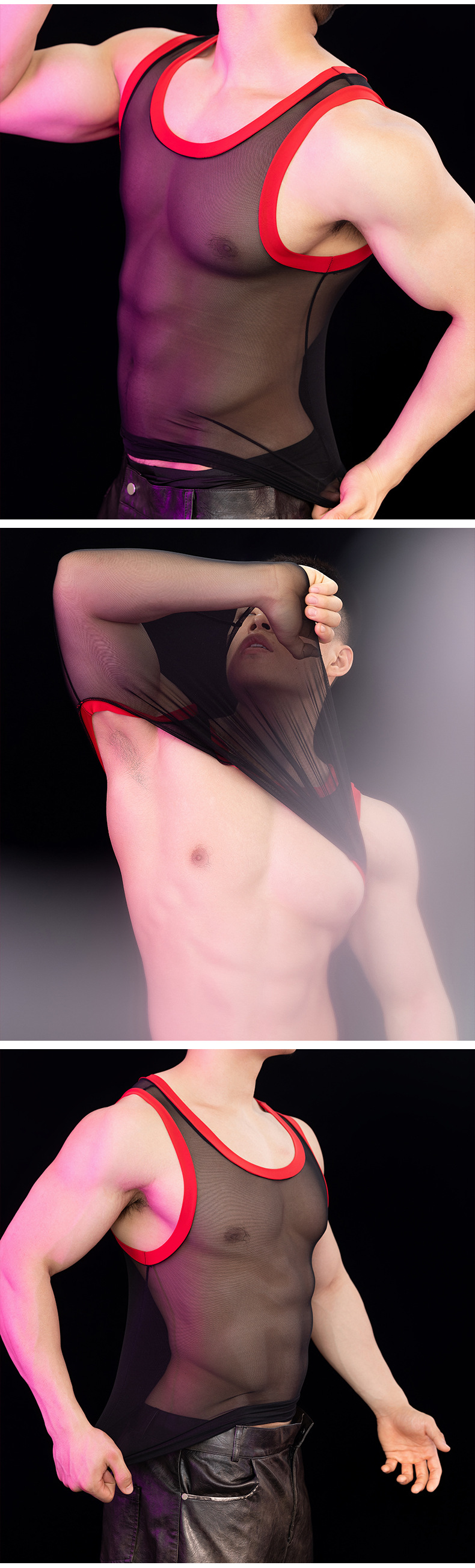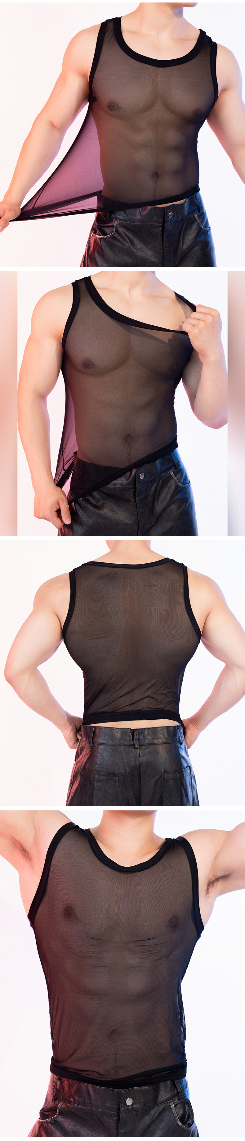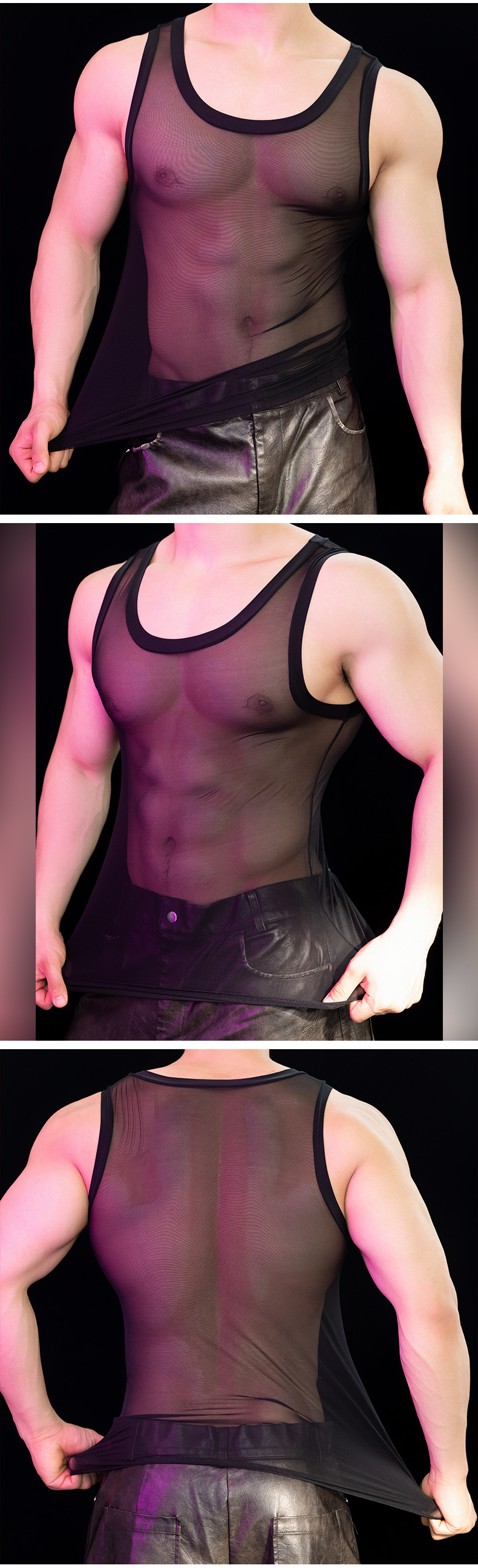 남자의 새로운 국경 대외 무역 섹시한 단단한 높은 탄성 가벼운 통기성 피트니스 마이티 나이트 클럽 섹시한 와이드 어깨 조끼
