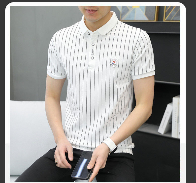 남자 반팔 티셔츠 트렌디 터틀넥 올매치 스트라이프 남자 반소매 탑스토어 가기