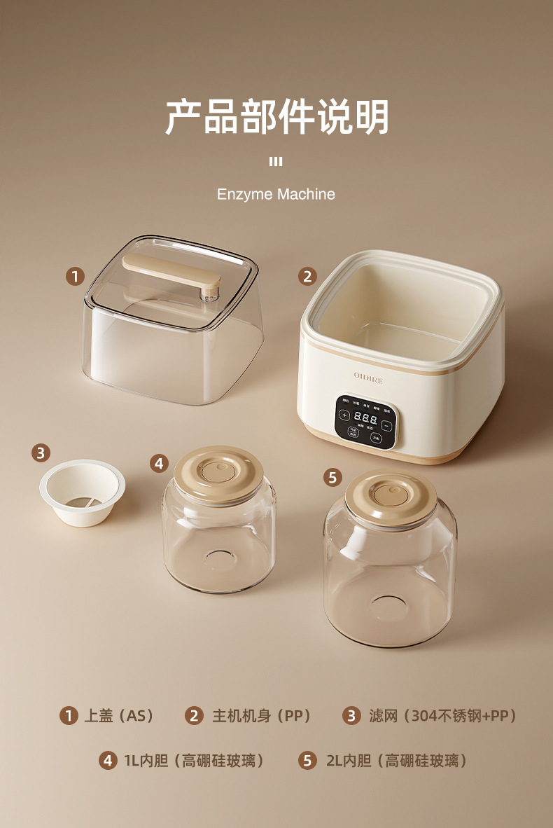 독일 OIDIRE 요구르트 기계 1-2L 스마트 홈 다기능 낫토 피클 쌀 와인 발효 기계