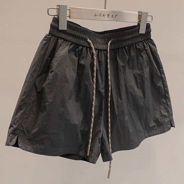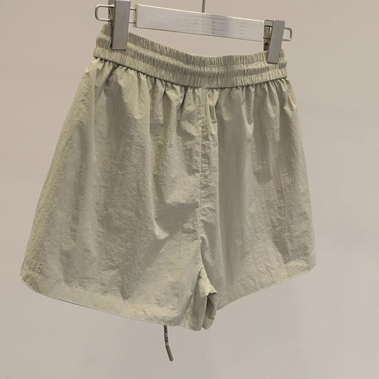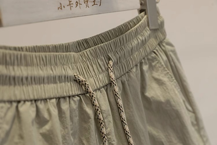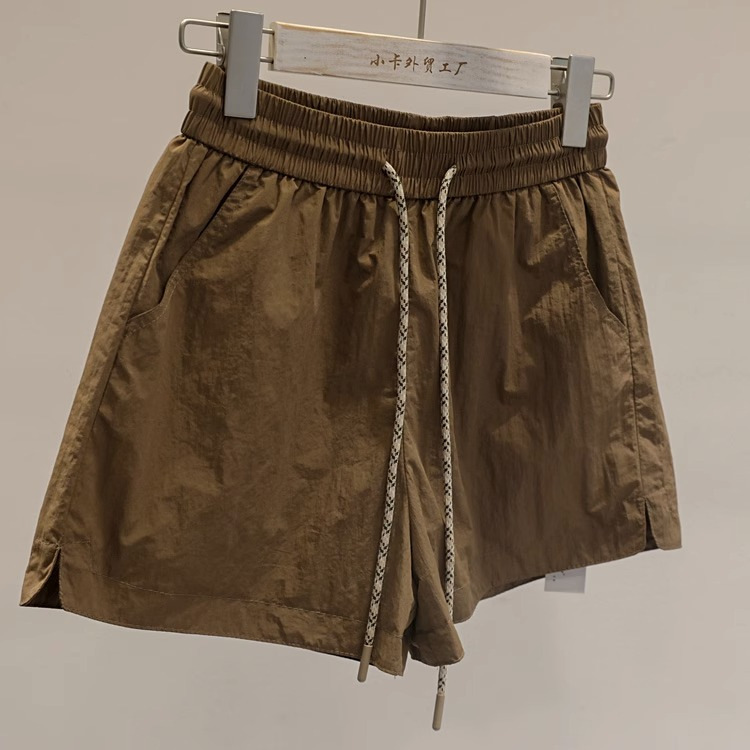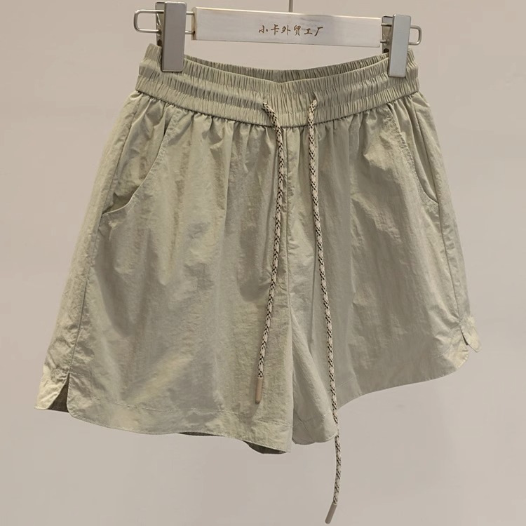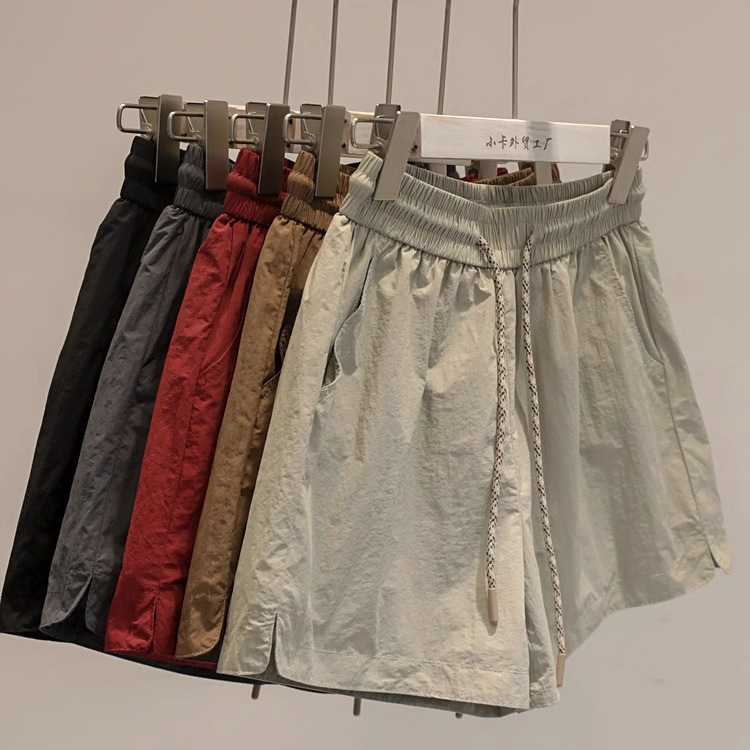 새로운 여름 느슨한 탄성 허리 복고풍 드로 스트링 간단한 단색 넓은 다리 슬리밍 캐주얼 스트레이트 반바지 머리카락 세대스토어 가기