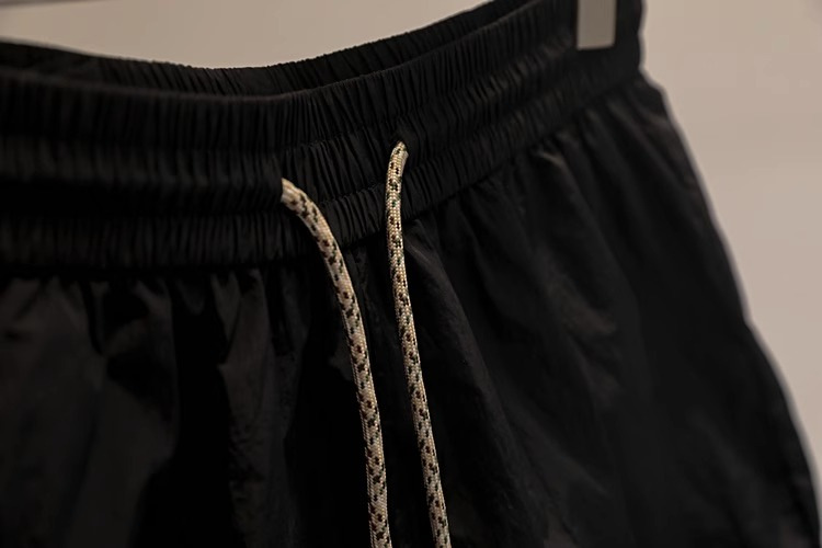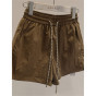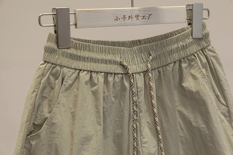 새로운 여름 느슨한 탄성 허리 복고풍 드로 스트링 간단한 단색 넓은 다리 슬리밍 캐주얼 스트레이트 반바지 머리카락 세대