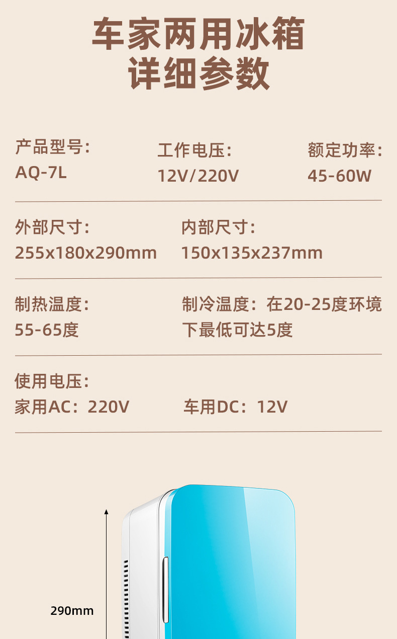 7L 휴대용 자동차 냉장고 차갑고 뜨거운 차 홈 냉장고 다목적 차 냉장고 냉동 작은 냉장고