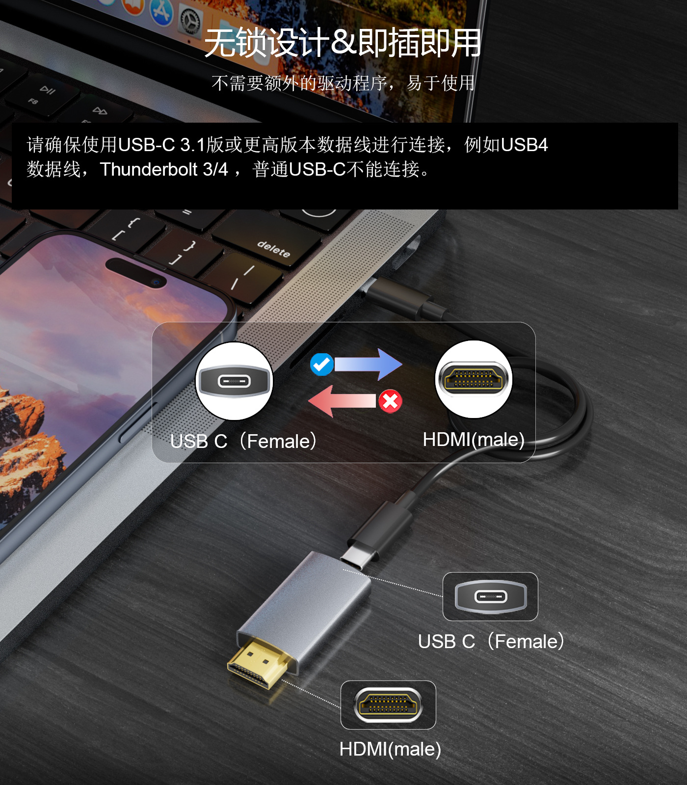 3.1 TYPE-C 여성 HDMI 남성 HD 어댑터 4K @ 30Hz USB C 여성 HDMI 어댑터스토어 가기