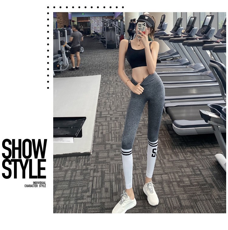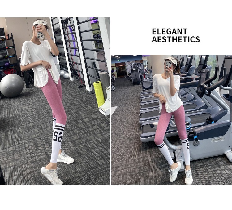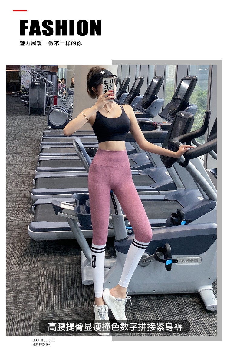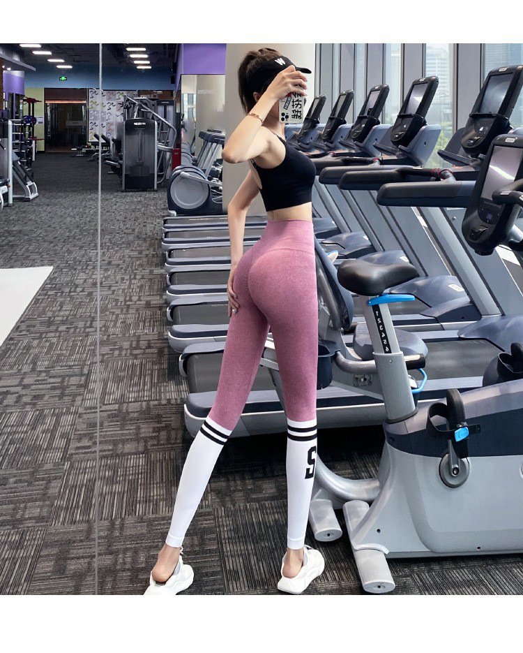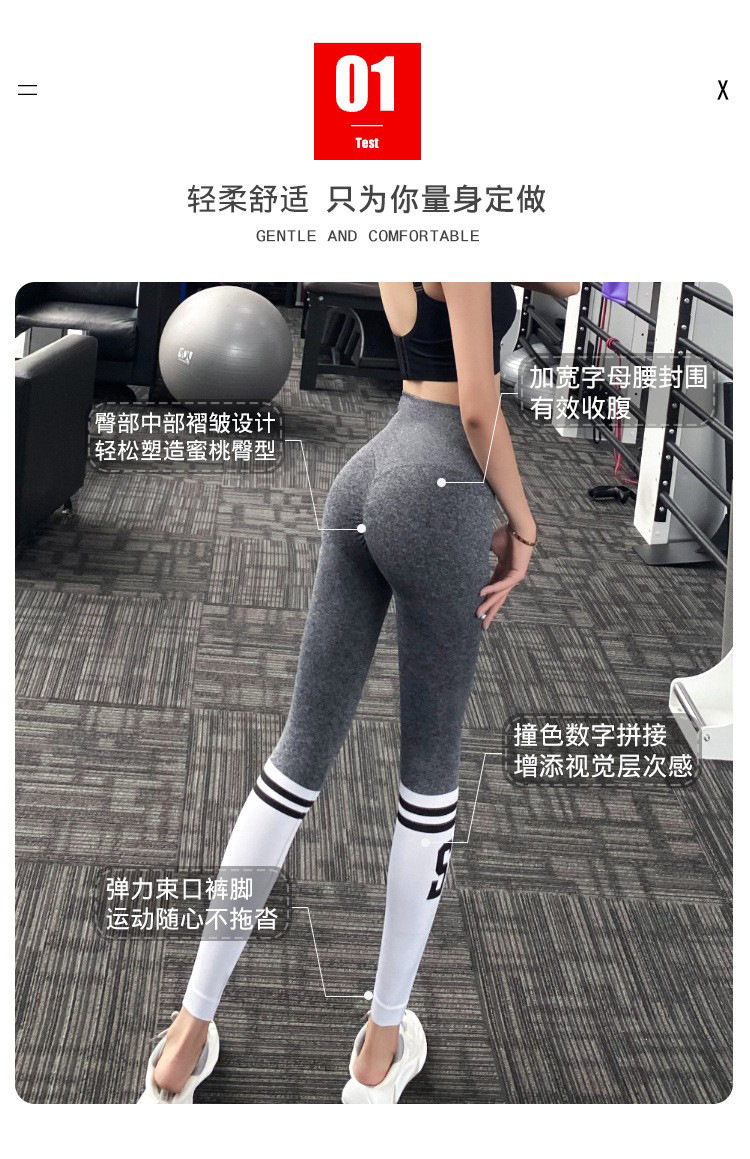 패션 컬러 매칭 요가 바지 새로운 탄성 높은 허리 복부 복숭아 빠른 건조 스포츠 바지 캐주얼 러닝 피트니스 여성스토어 가기