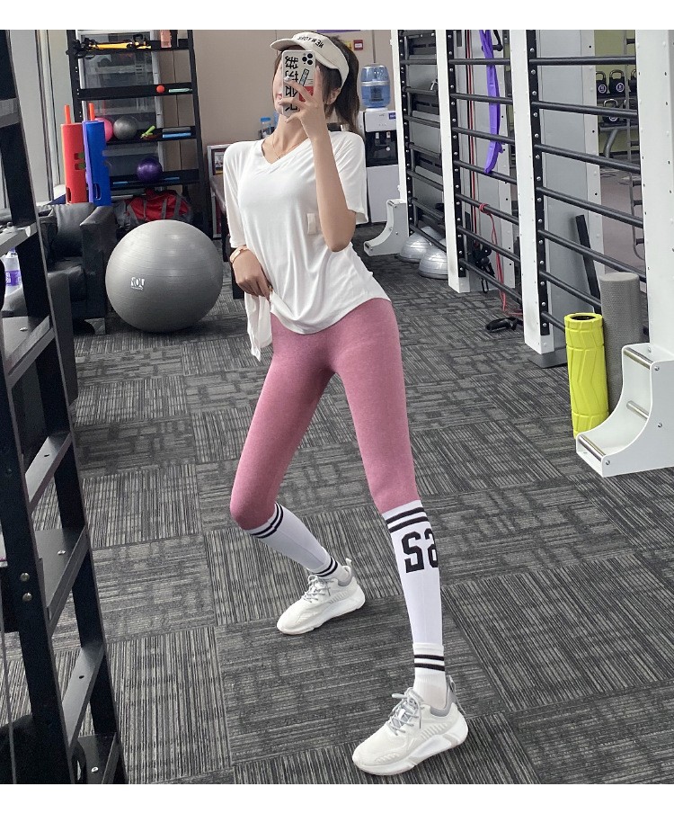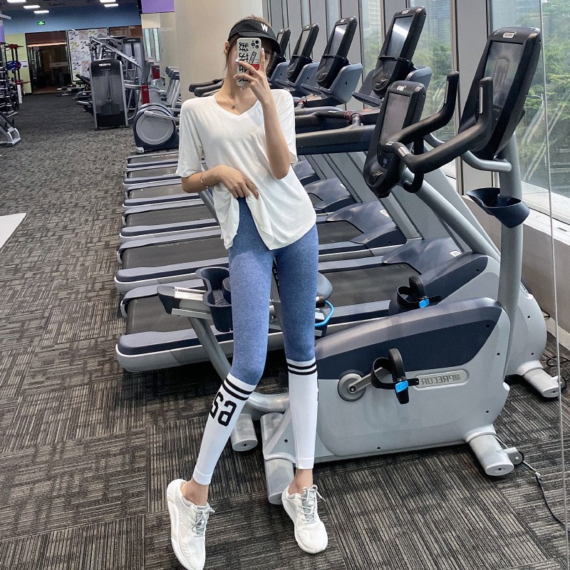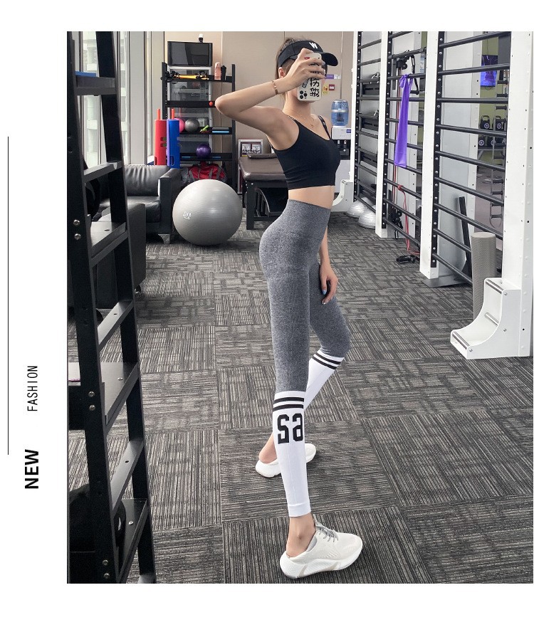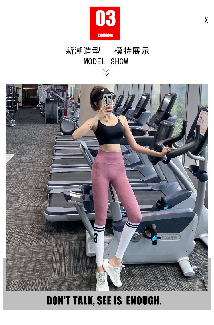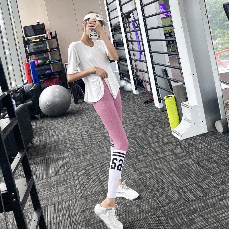 패션 컬러 매칭 요가 바지 새로운 탄성 높은 허리 복부 복숭아 빠른 건조 스포츠 바지 캐주얼 러닝 피트니스 여성스토어 가기