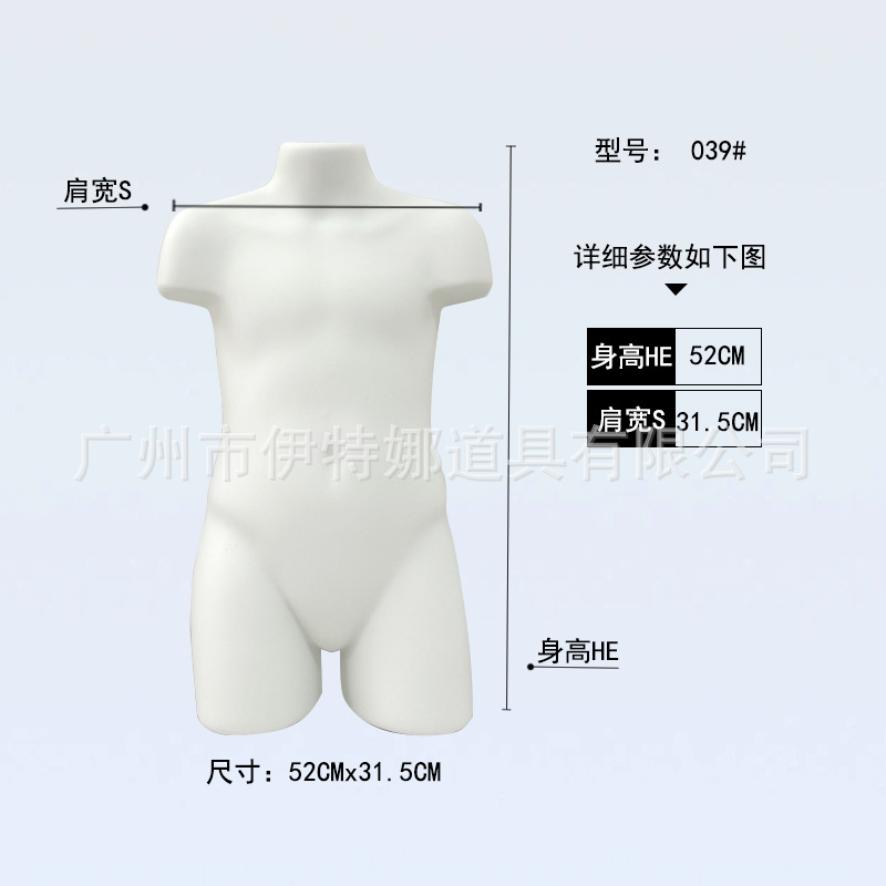 어린이 모델 어린이 플라스틱 절반 길이 모델 소품은 소년을위한 보드 수영복 의류 가슴 조각 옷을 전시합니다.스토어 가기