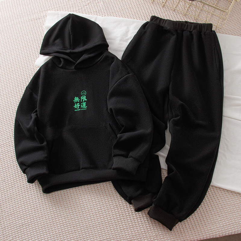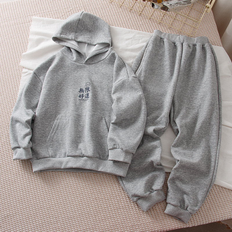 소년 스웨트 셔츠 세트 봄과 가을 새 소녀 후드 풀오버 스웨트 셔츠 긴 소매 바지 느슨한 서양식 캐주얼 세트
