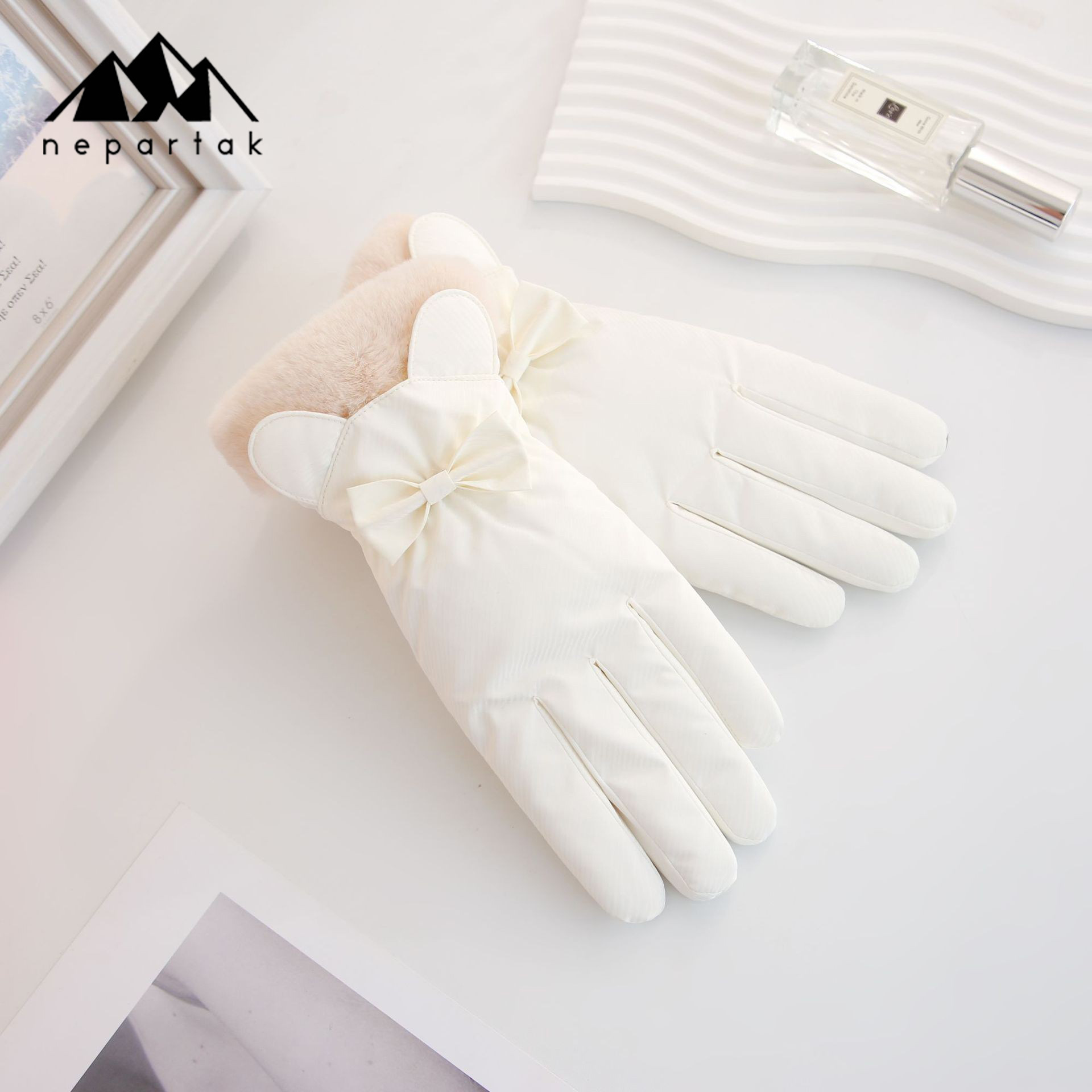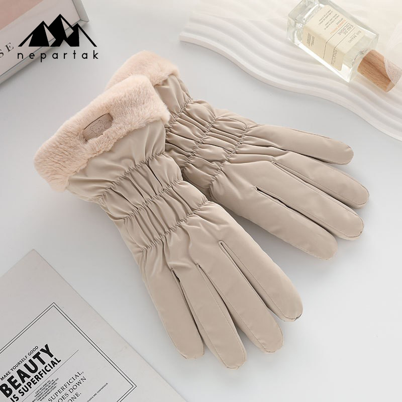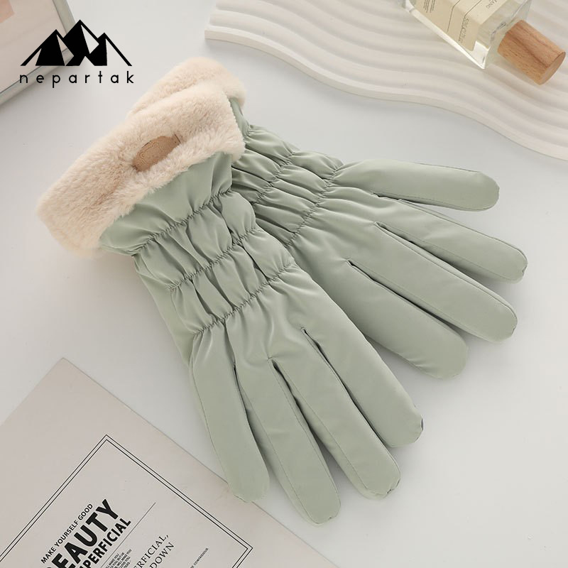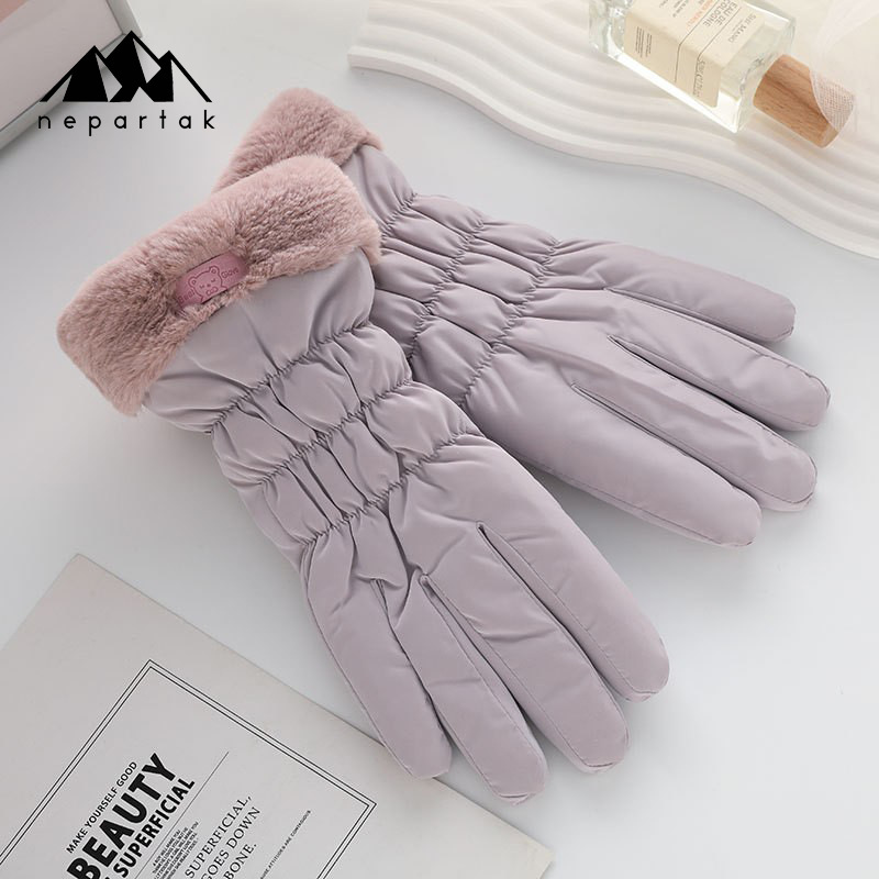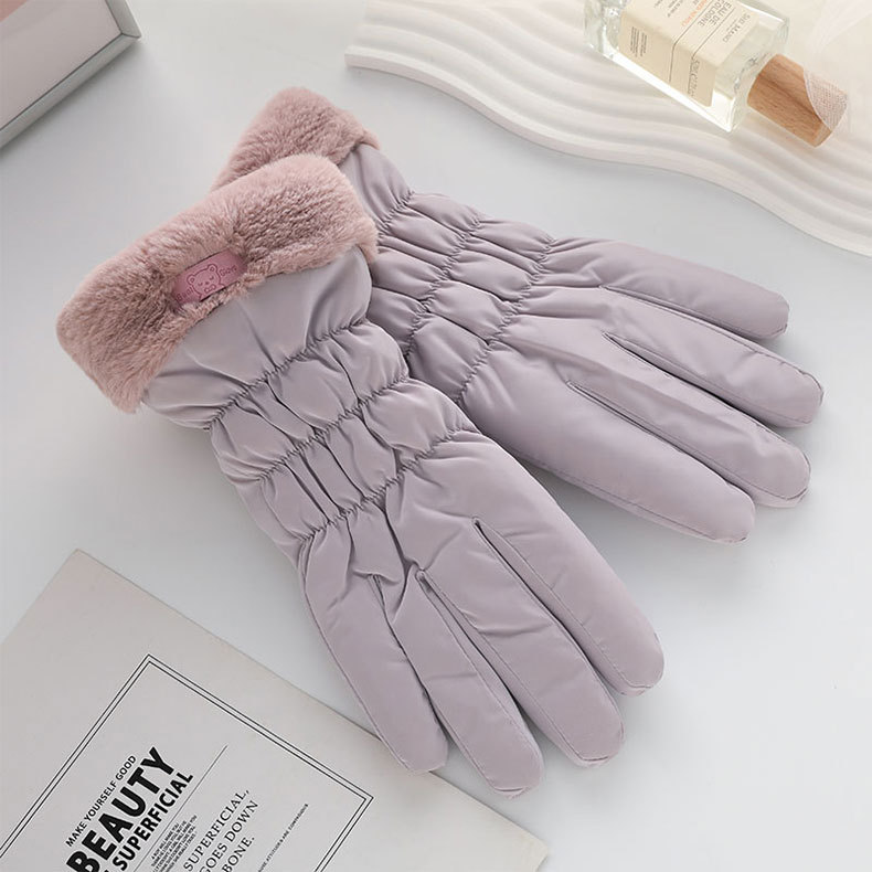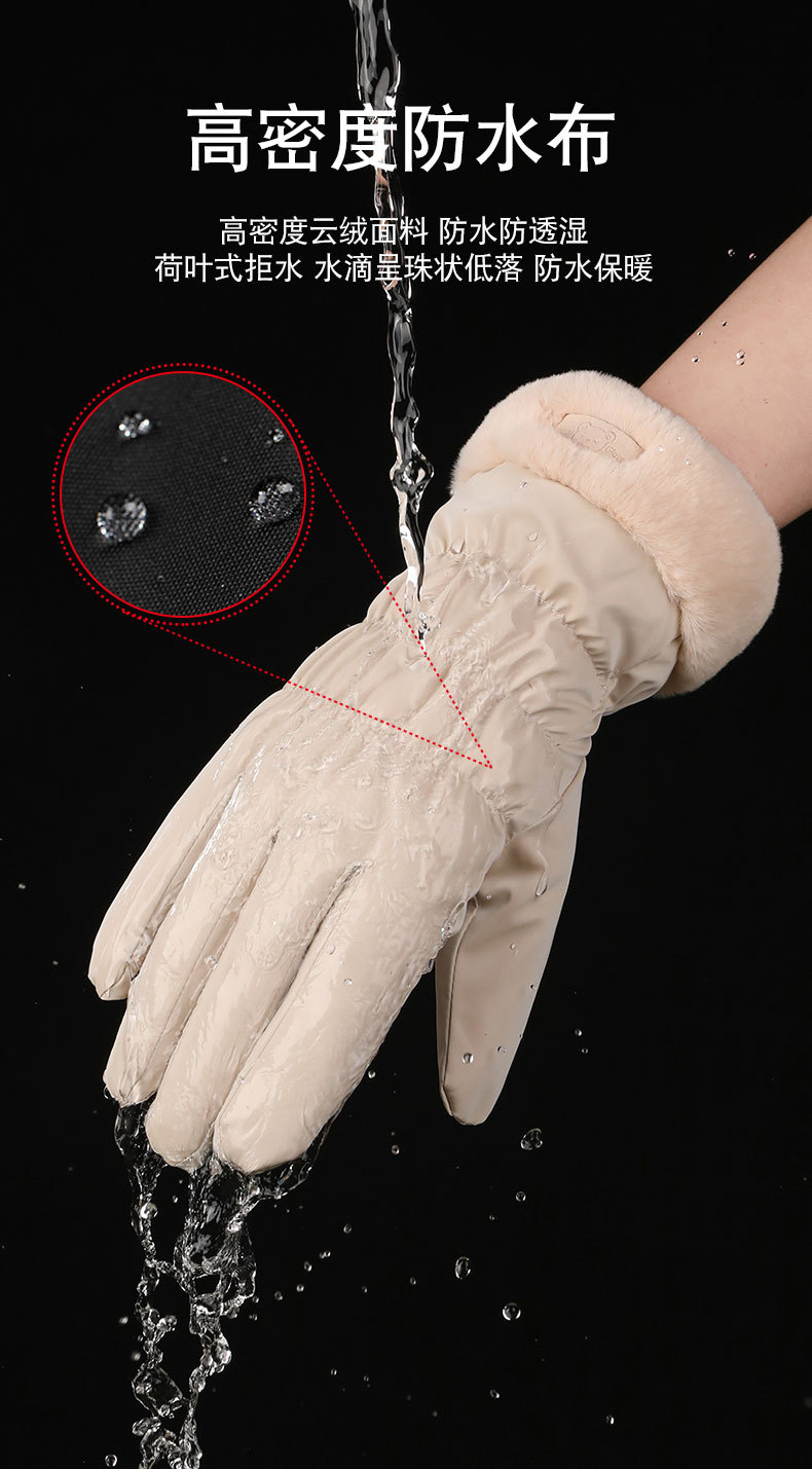 겨울 따뜻한 장갑 여성 사이클링 터치 스크린 기모 두꺼운 바람 방지 물이 튀는 귀여운 한국 스타일 스키 장갑