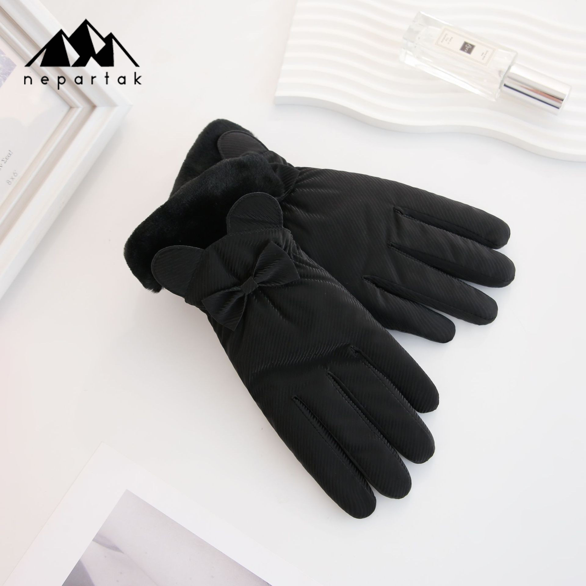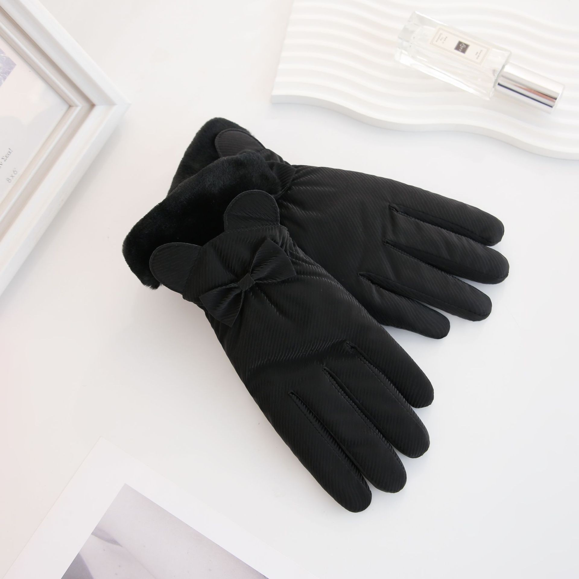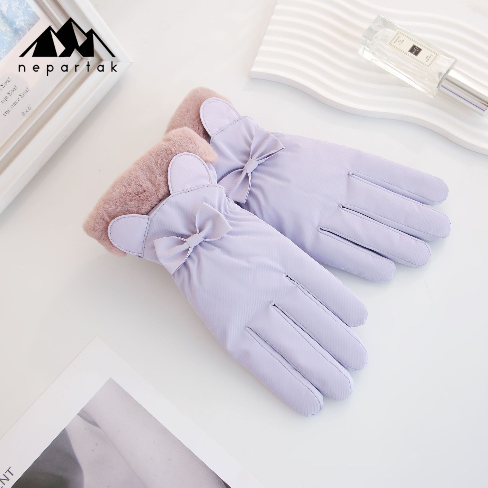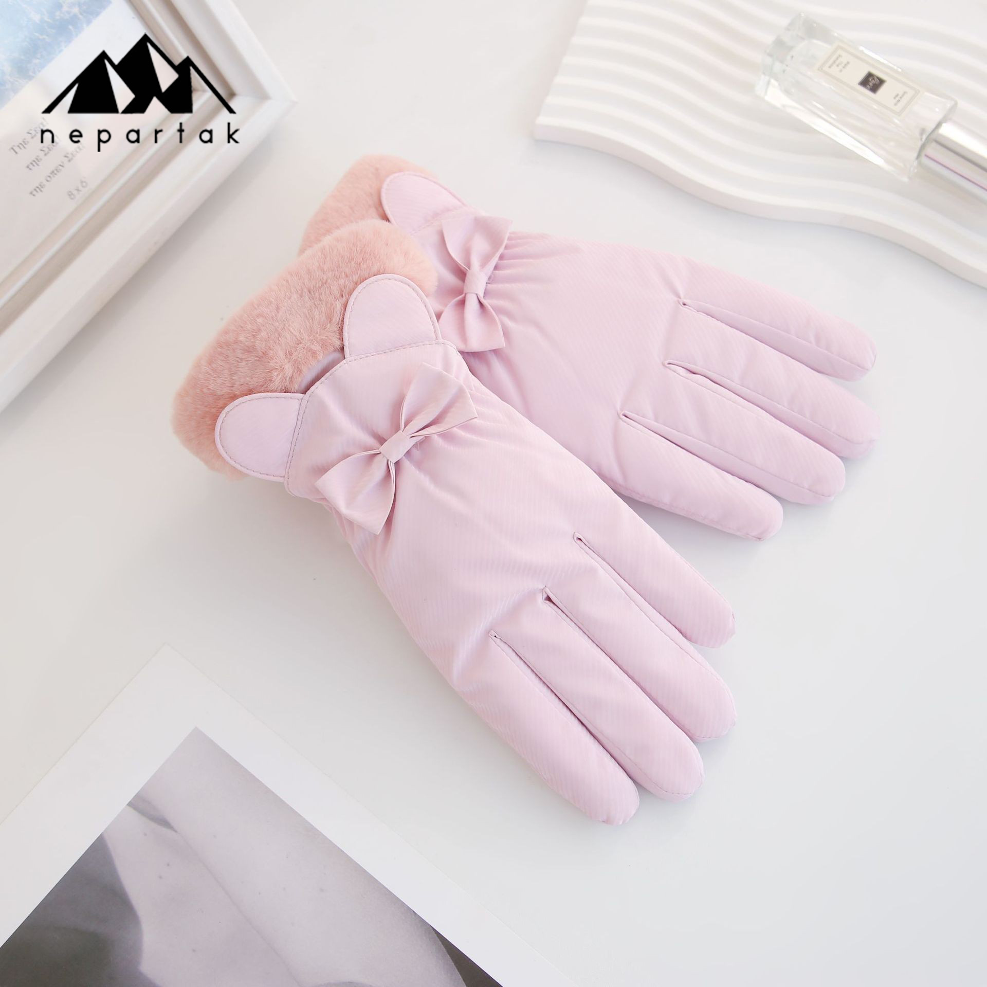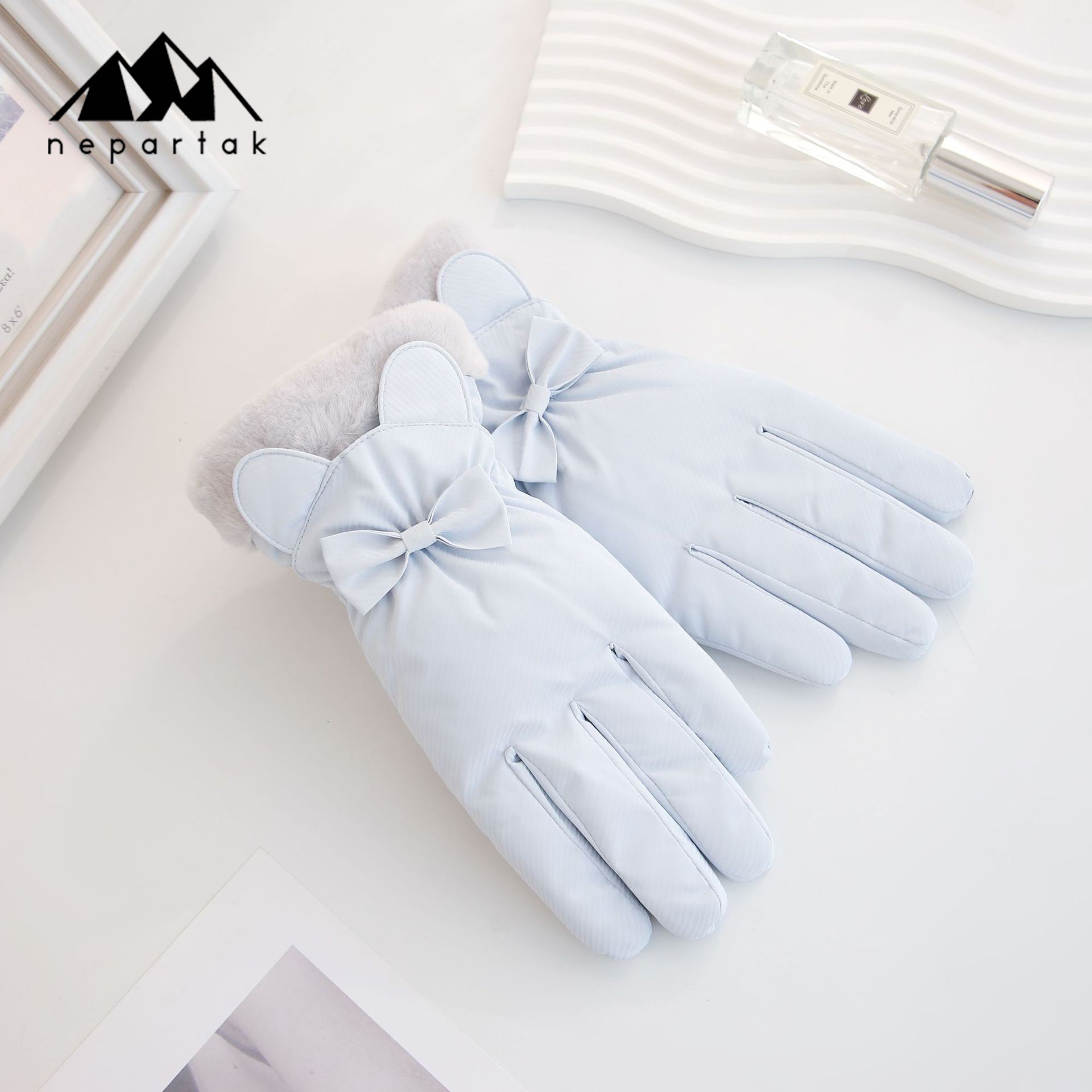 겨울 따뜻한 장갑 여성 사이클링 터치 스크린 기모 두꺼운 바람 방지 물이 튀는 귀여운 한국 스타일 스키 장갑