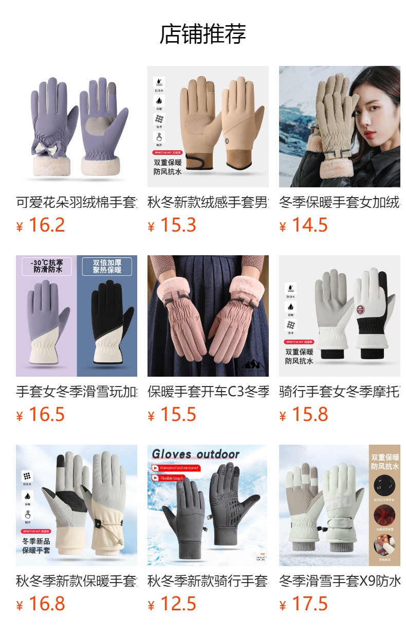 겨울 따뜻한 장갑 여성 사이클링 터치 스크린 기모 두꺼운 바람 방지 물이 튀는 귀여운 한국 스타일 스키 장갑스토어 가기