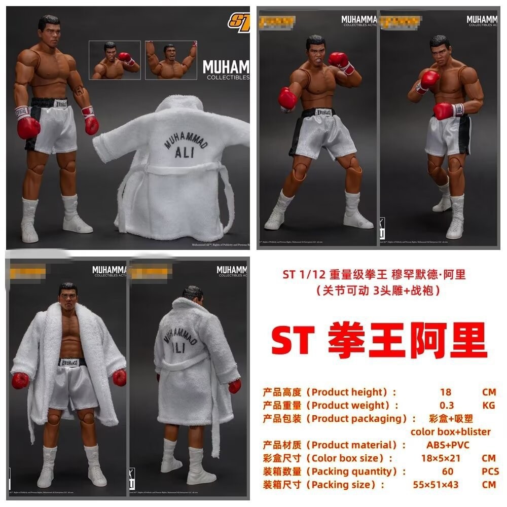 헤비급 타이슨 복싱 챔피언 무함마드 알리 3 머리 조각 배틀 로브 1/12 합동 움직일 수있는 핸드 메이드 모델스토어 가기