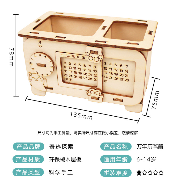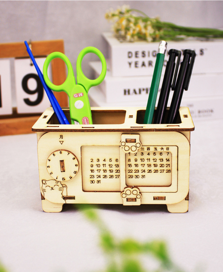 영원한 달력 펜 홀더 3D 3 차원 퍼즐 과학 생산 수제 퍼즐 조립 소재 DIY 창조적 인 크리스마스 선물