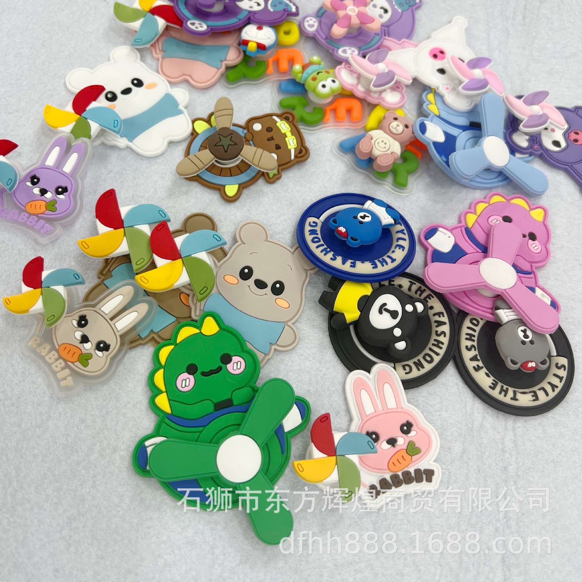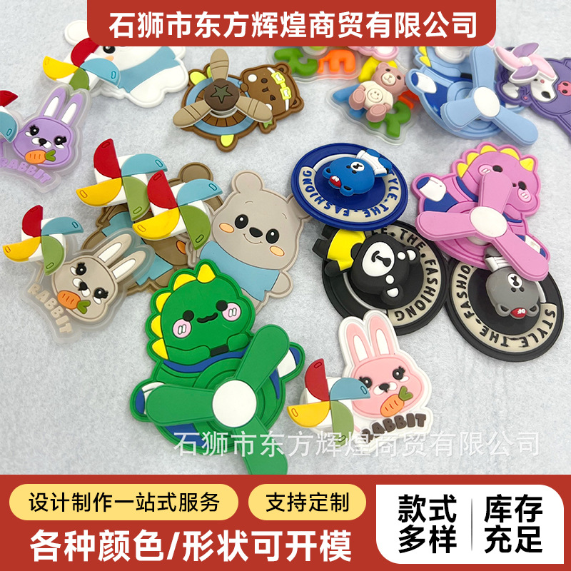 작은 곰과 토끼 만화 캐릭터 PVC 소프트 라벨 어린이용 선캡 회전 풍차 PVC 고무 라벨 비행기 소프트 라벨