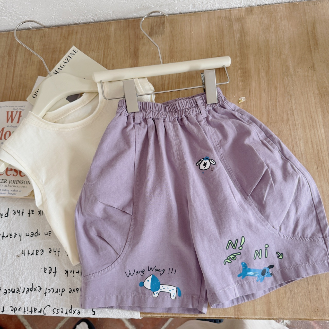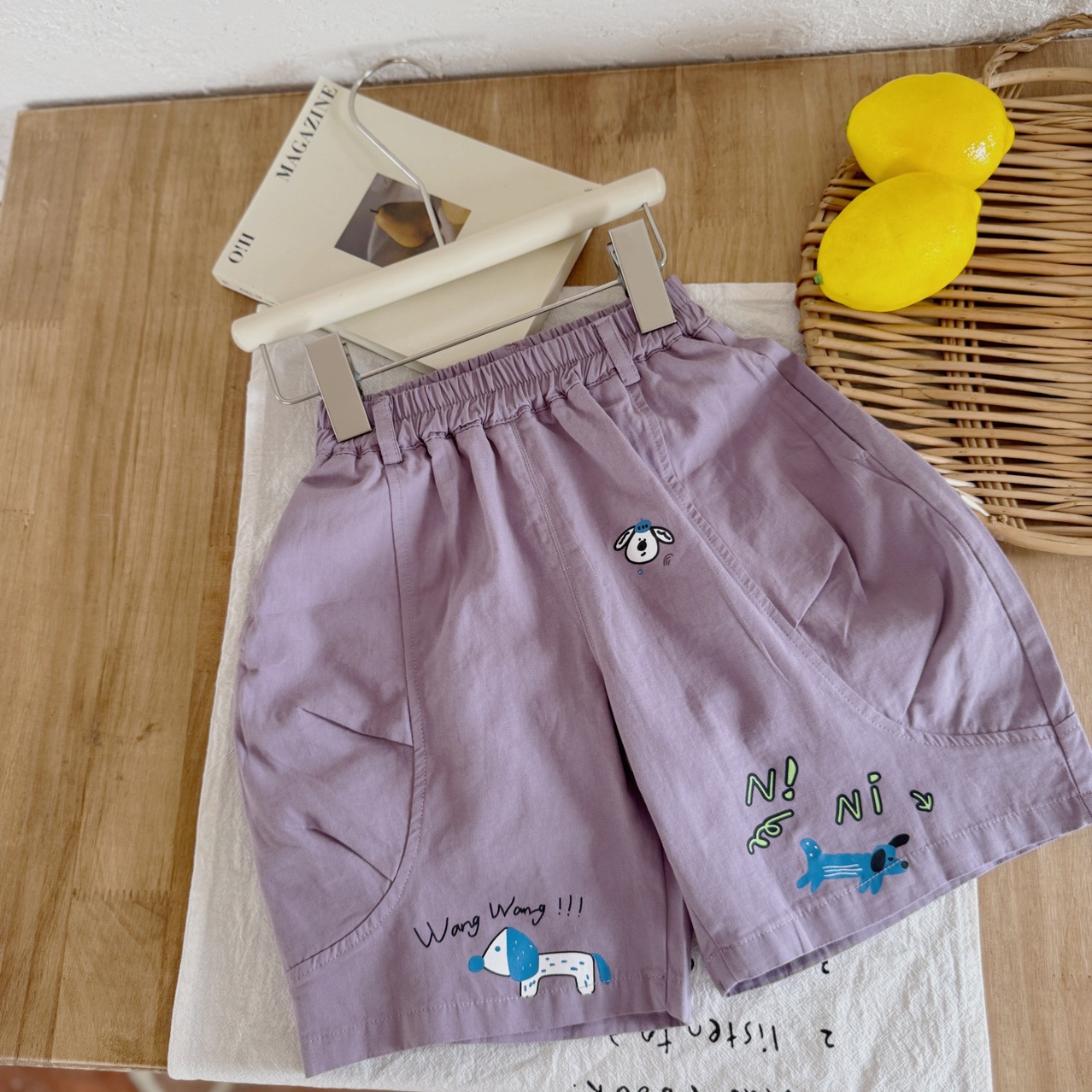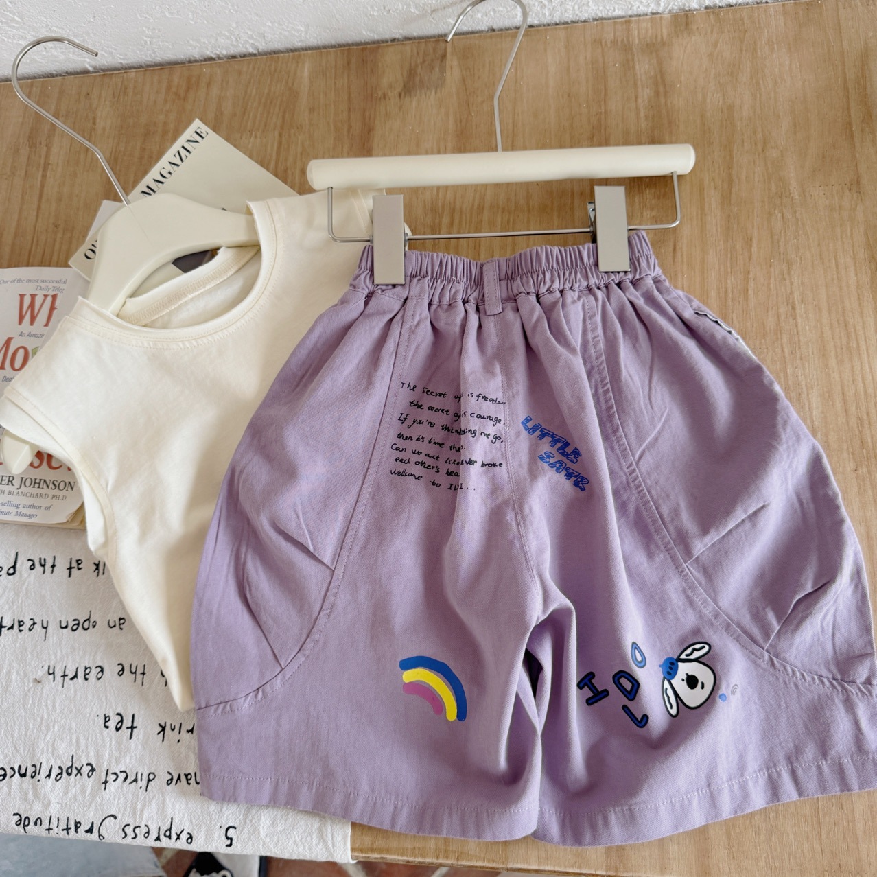 2024 어린이 여름 느슨한 아기 소년과 소녀 캐주얼 코튼 바지 만화 편지 포켓 바지를 인쇄 중간 길이 바지
