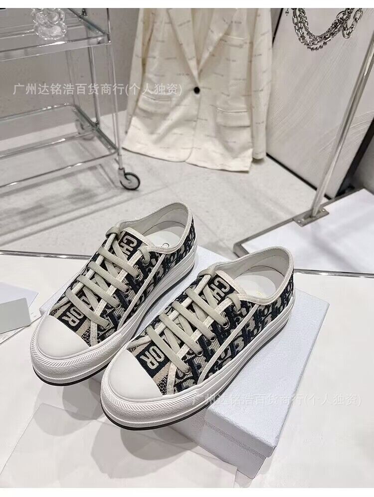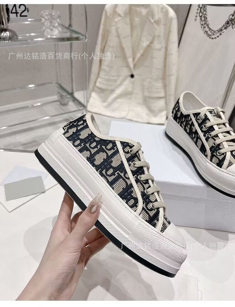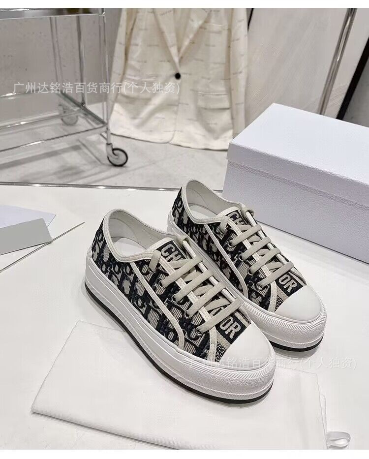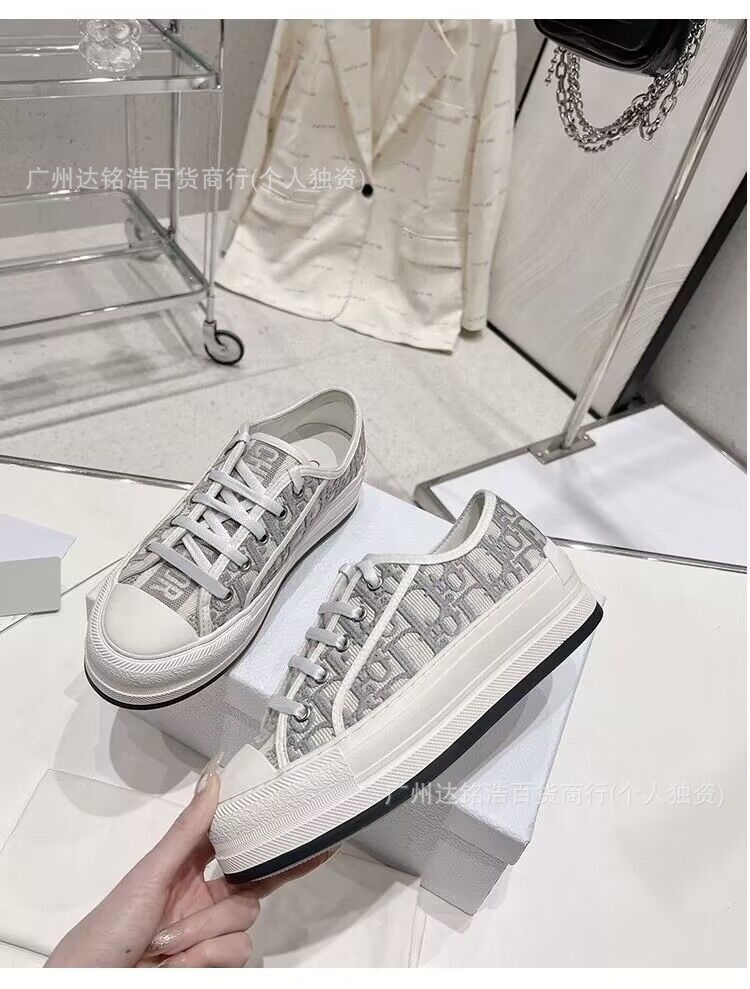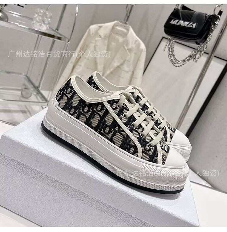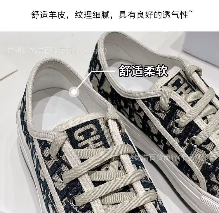 2026년 봄 D 브랜드 자수 캔버스화 캐주얼 레트로 레터링 다용도 두꺼운 밑창 운동화 여성 레트로 스타일