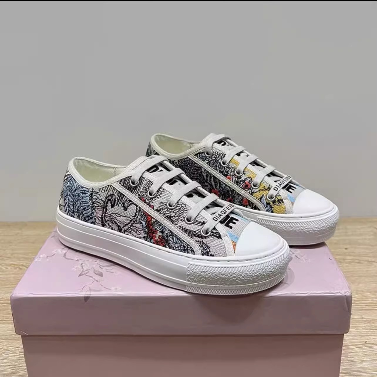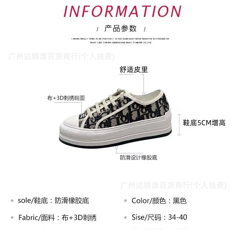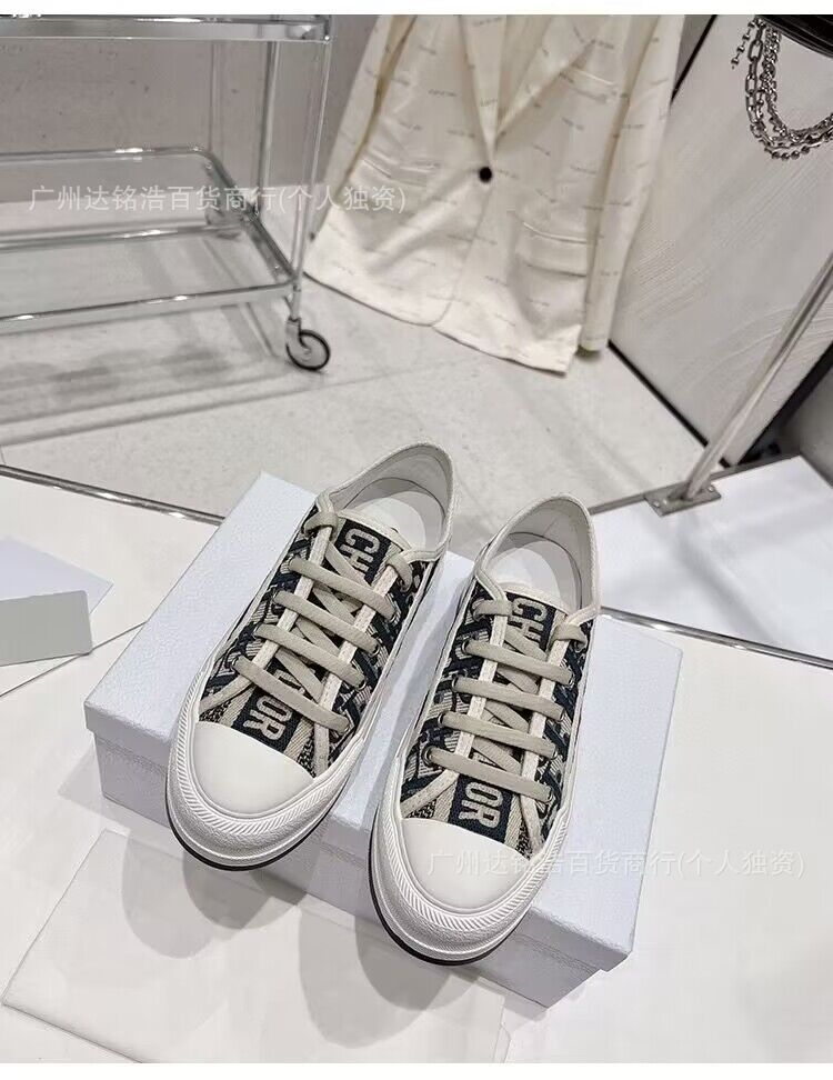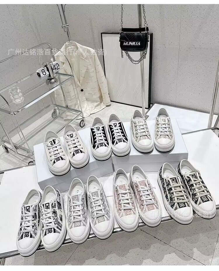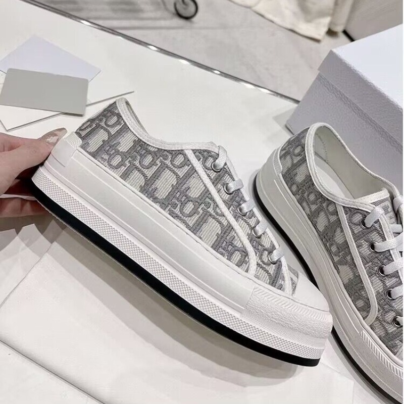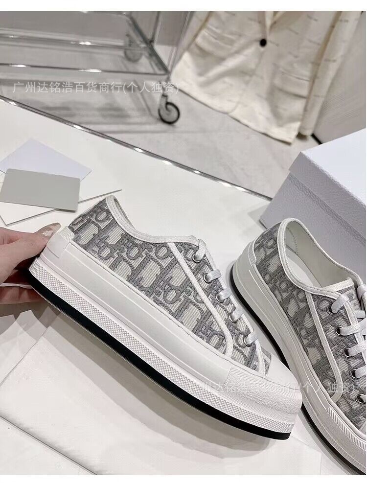 2026년 봄 D 브랜드 자수 캔버스화 캐주얼 레트로 레터링 다용도 두꺼운 밑창 운동화 여성 레트로 스타일