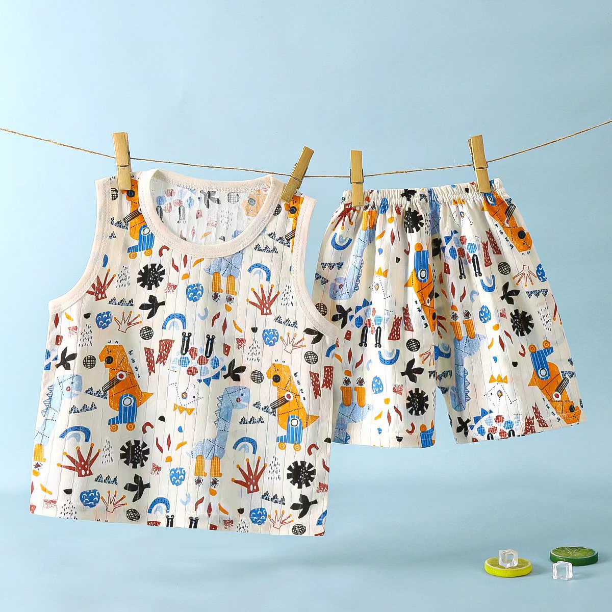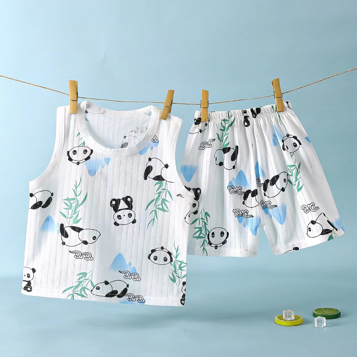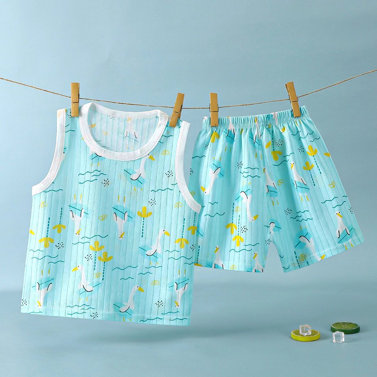 어린이 여름 자카드 코튼 조끼 세트 새로운 소년과 소녀 아기 민소매 만화 통기성 트렌디 아동복