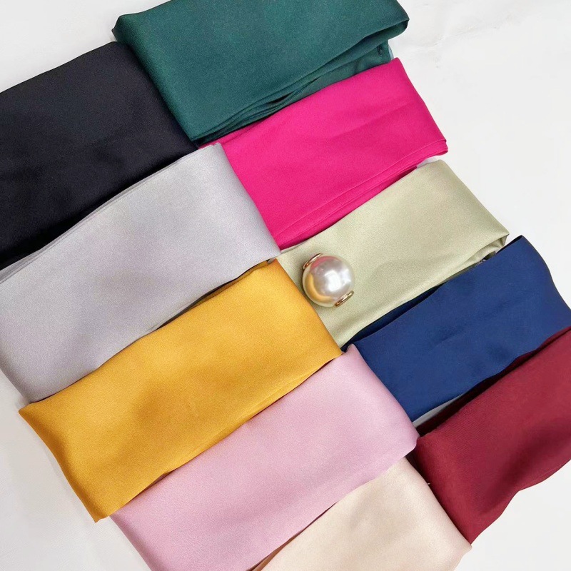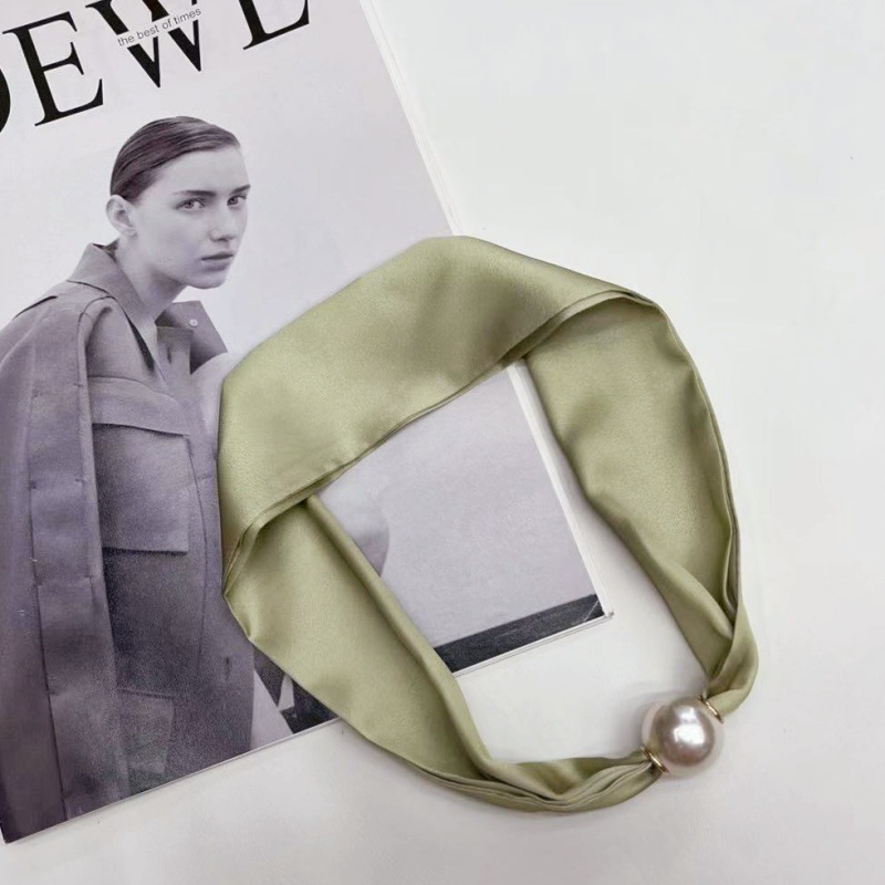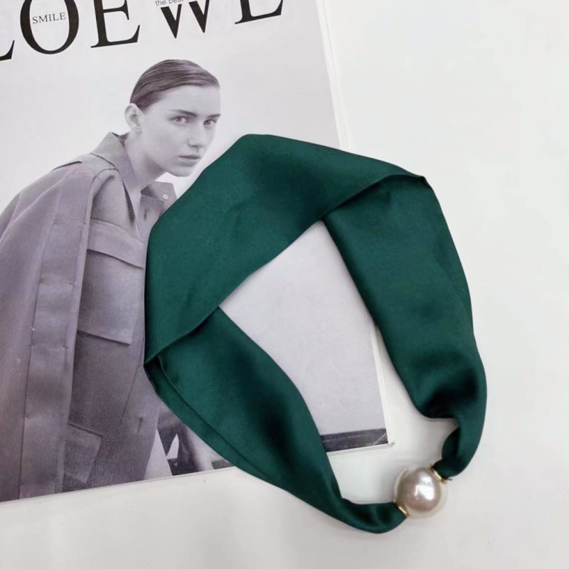 봄과 가을 단색 패션 진주 마그네틱 버튼 스카프 여성의 하이 엔드 우아한 올 매치 여름 목 보호 새틴 작은 스카프