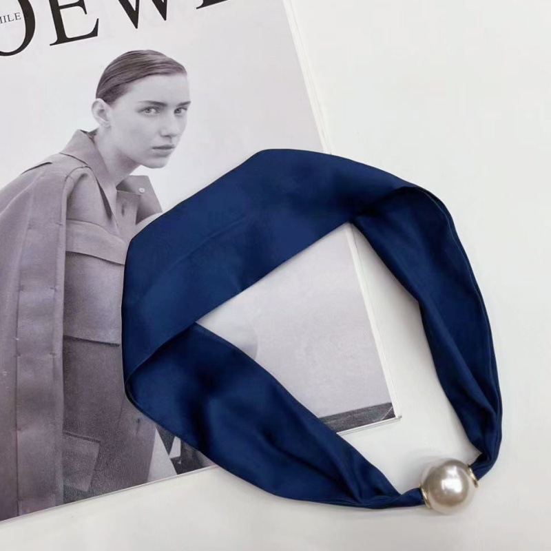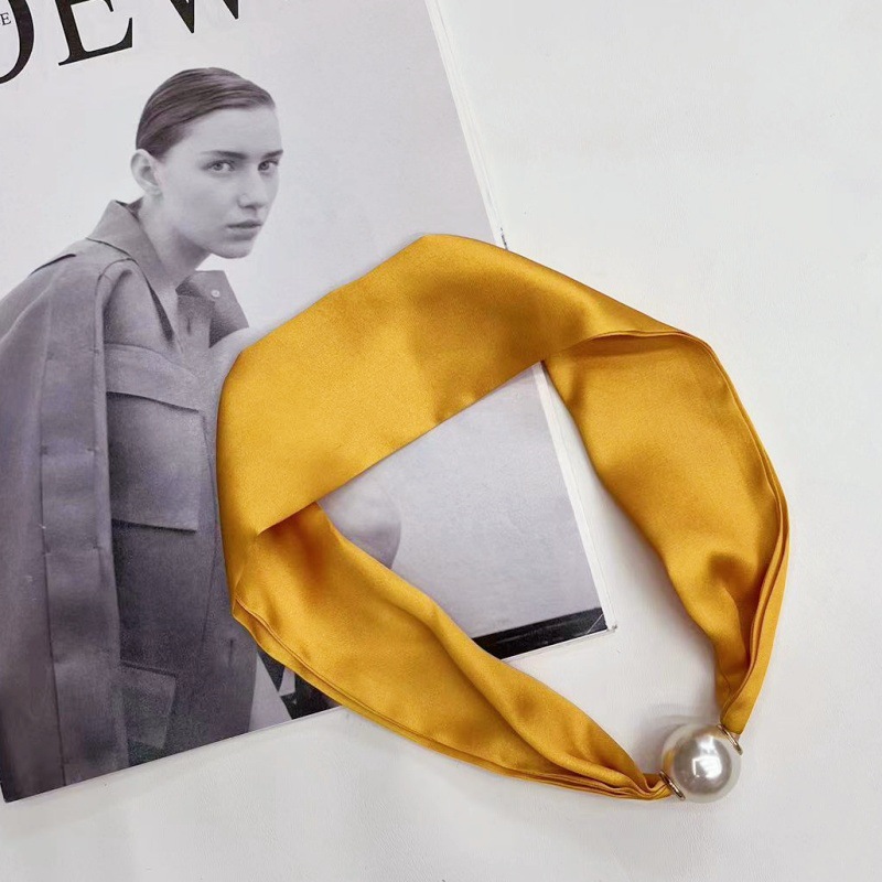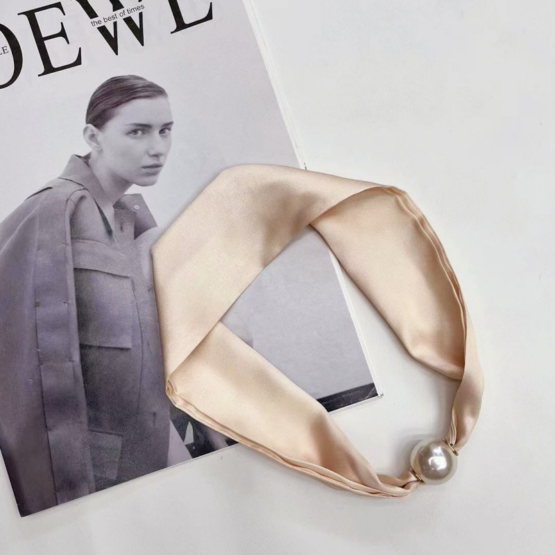 봄과 가을 단색 패션 진주 마그네틱 버튼 스카프 여성의 하이 엔드 우아한 올 매치 여름 목 보호 새틴 작은 스카프스토어 가기