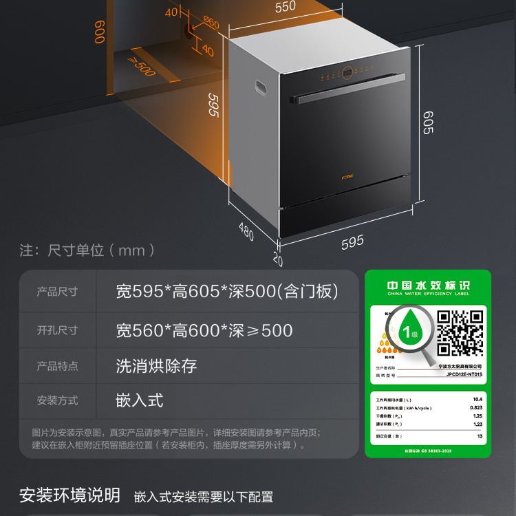 팡. 너무 내장 된 식기 세척기 NT01S 완전 자동 가정용 소형 살균 지능형 제어 스토브 13 세트스토어 가기
