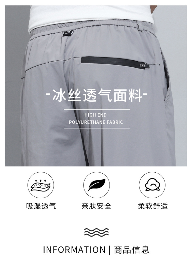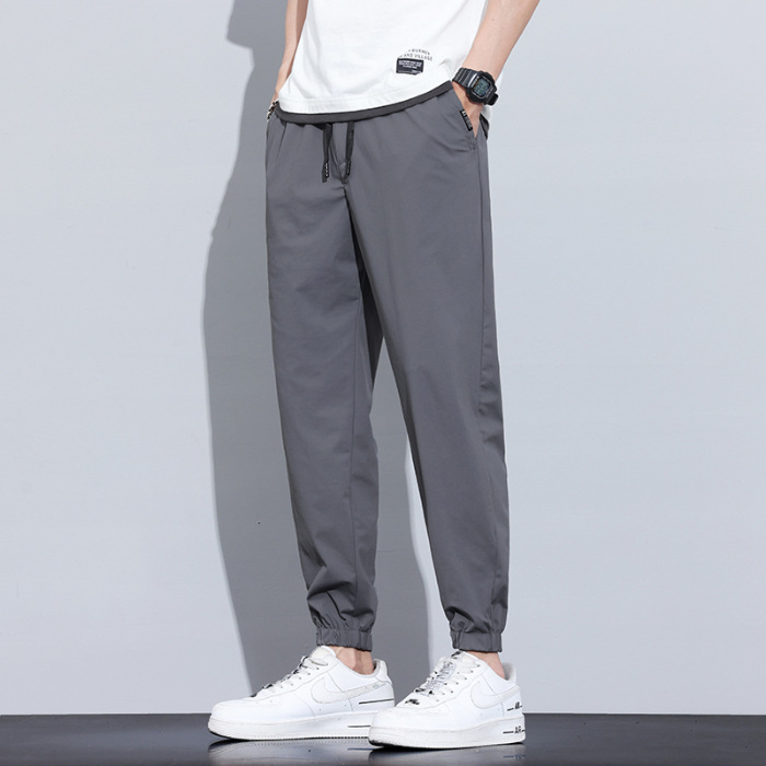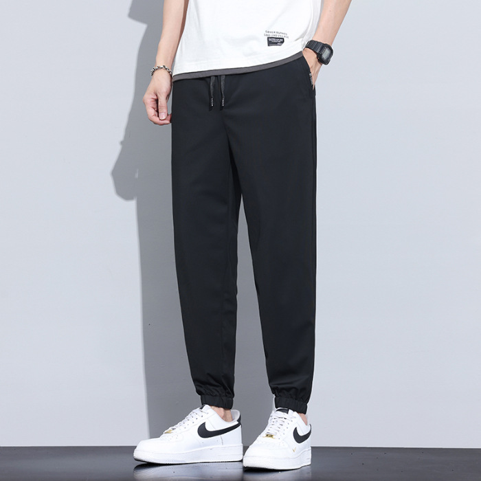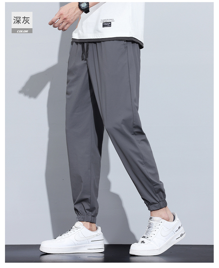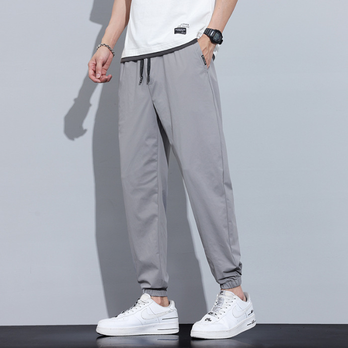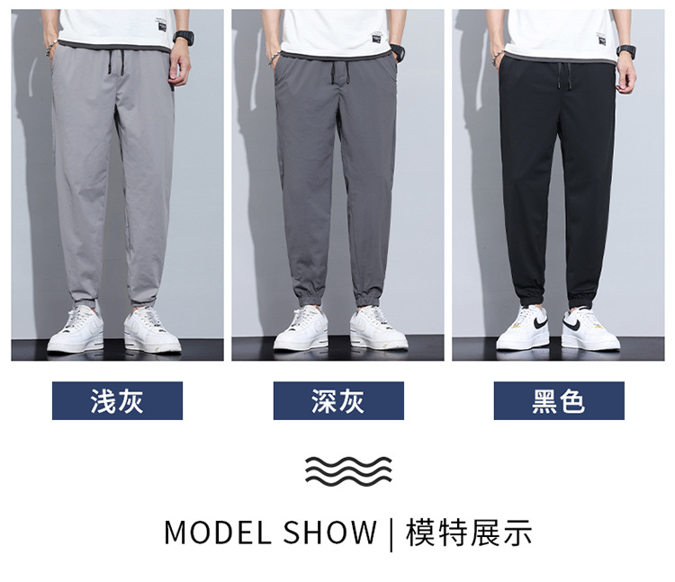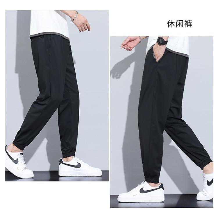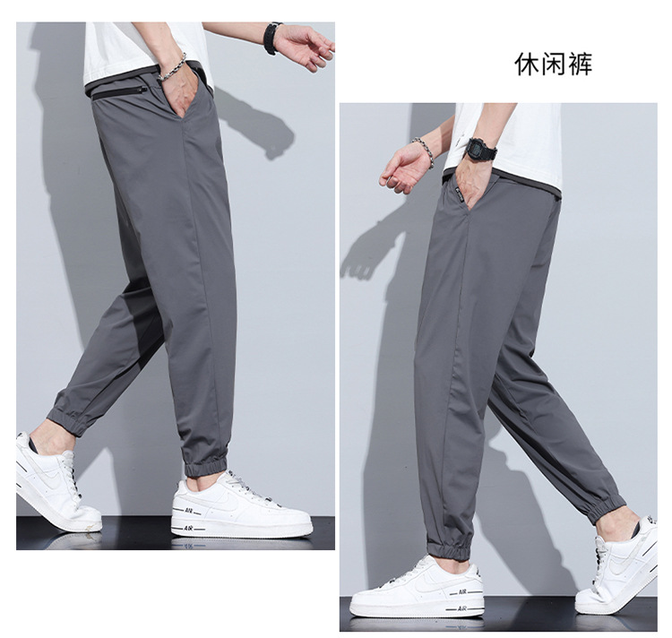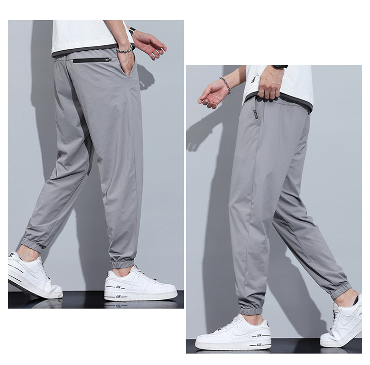 아이스 실크 캐주얼 바지 남자 2024 새로운 올 매치 통기성 발목 바지 여름 얇은 빠른 건조 스포츠 바지 트렌디스토어 가기