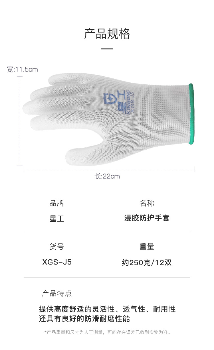 스타 라인 장갑 노동 보호 니트릴/PU 담그기 장갑 손가락 손바닥 미끄럼 방지 내유성 산업 보호 12