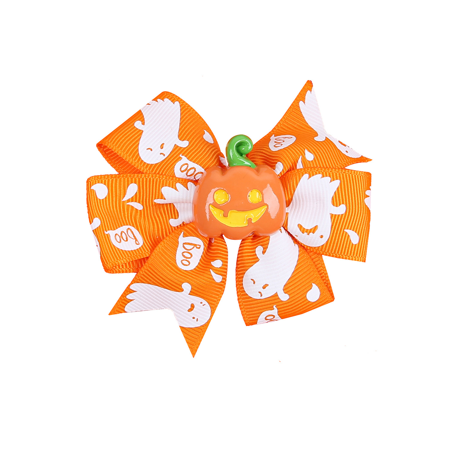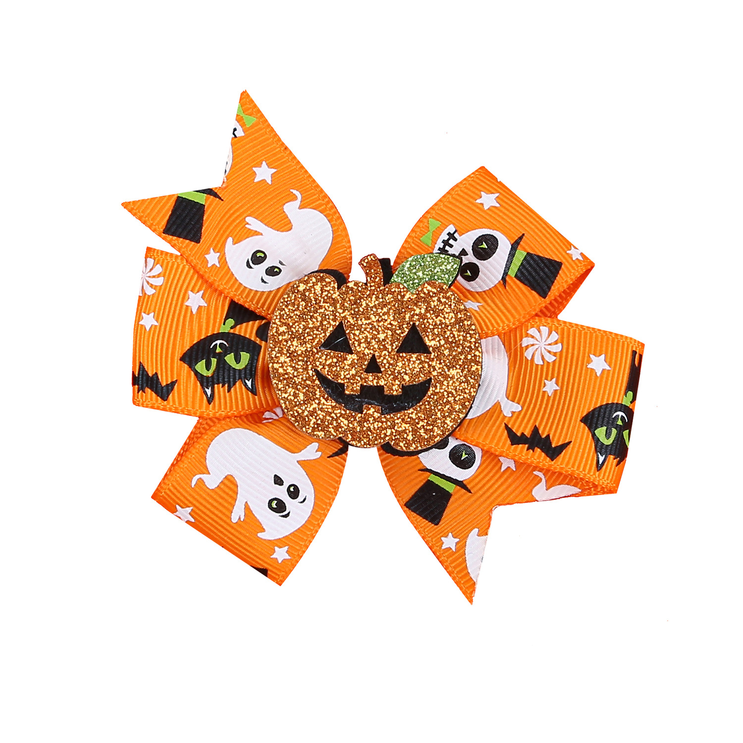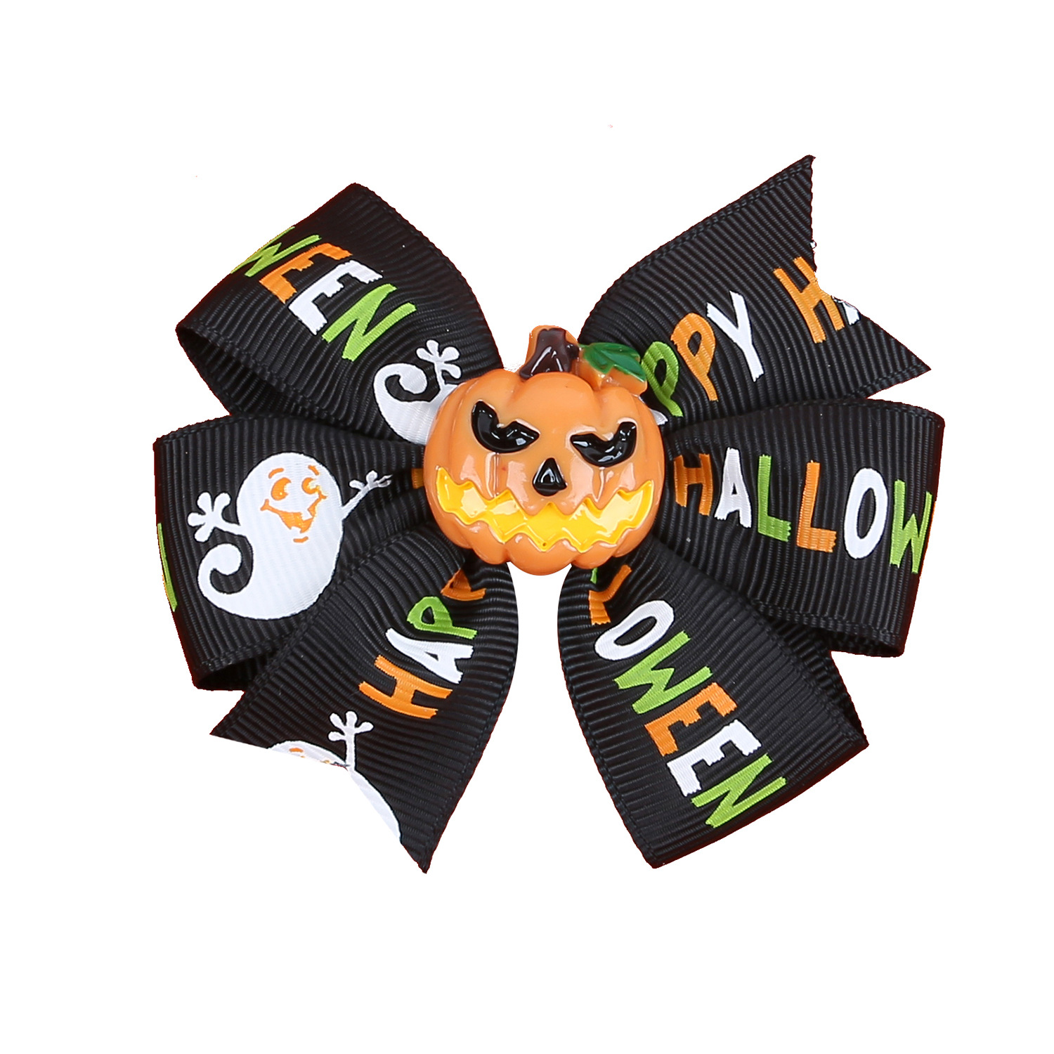 【名称】新款儿童恶魔南瓜燕尾蝴蝶结发夹幽灵印花蝴蝶结万圣节派对发饰