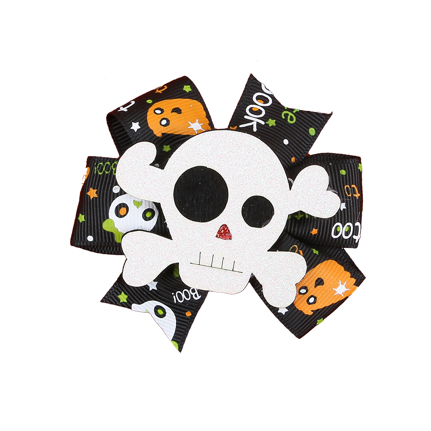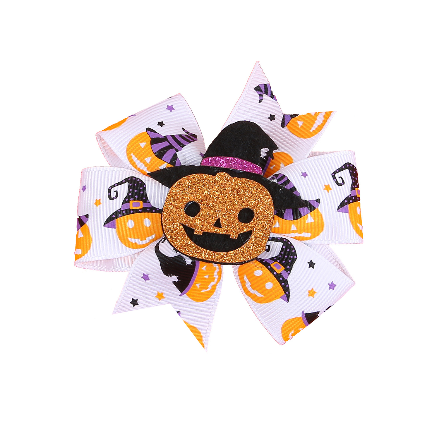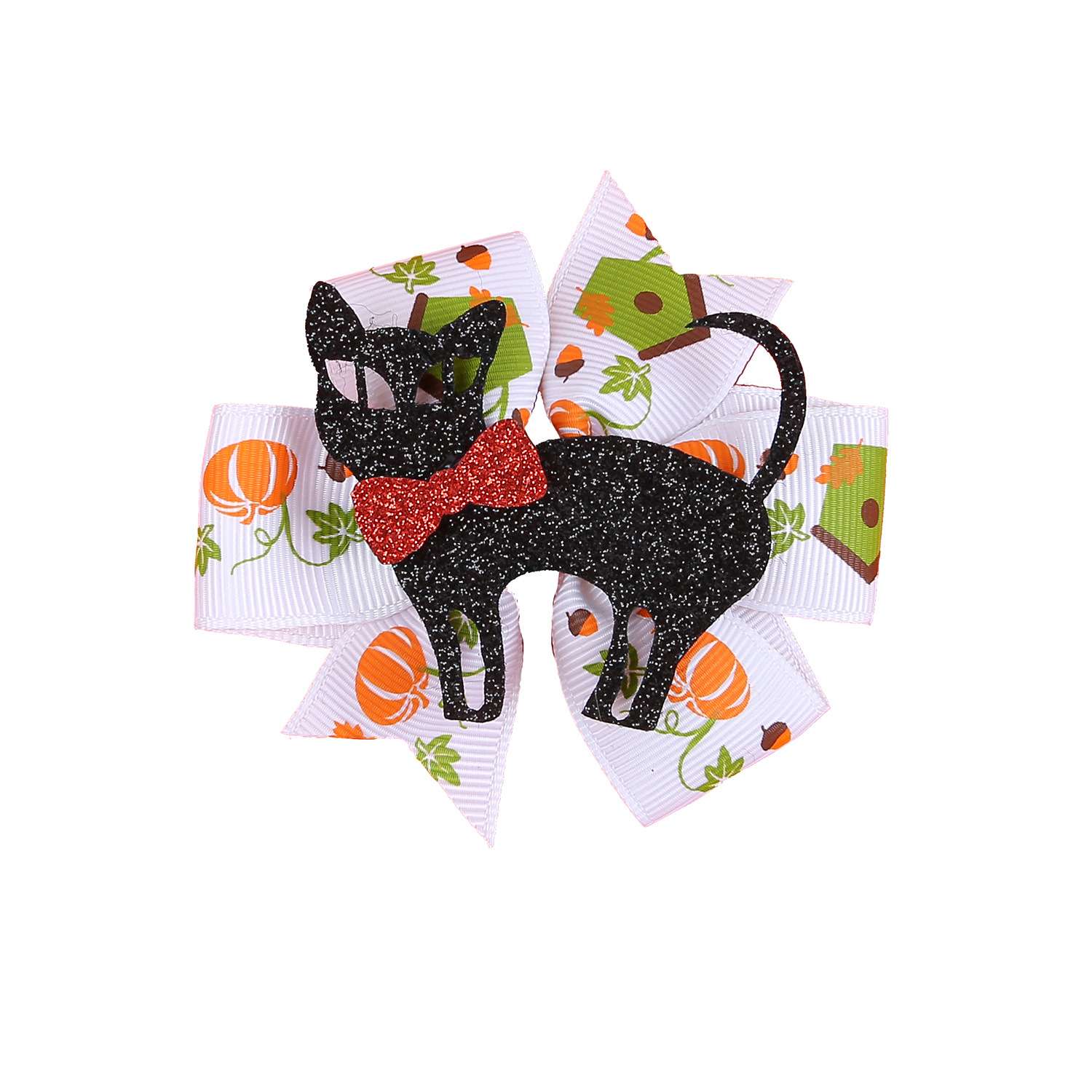 【名称】新款儿童恶魔南瓜燕尾蝴蝶结发夹幽灵印花蝴蝶结万圣节派对发饰