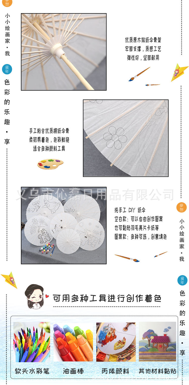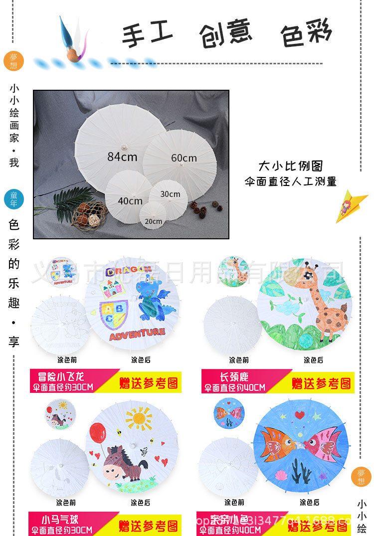 종이 우산 DIY 수제 그림 우산 유치원 창조적 인 어린이 우산 손으로 그린 낙서 우산 빈 기름 종이 우산스토어 가기