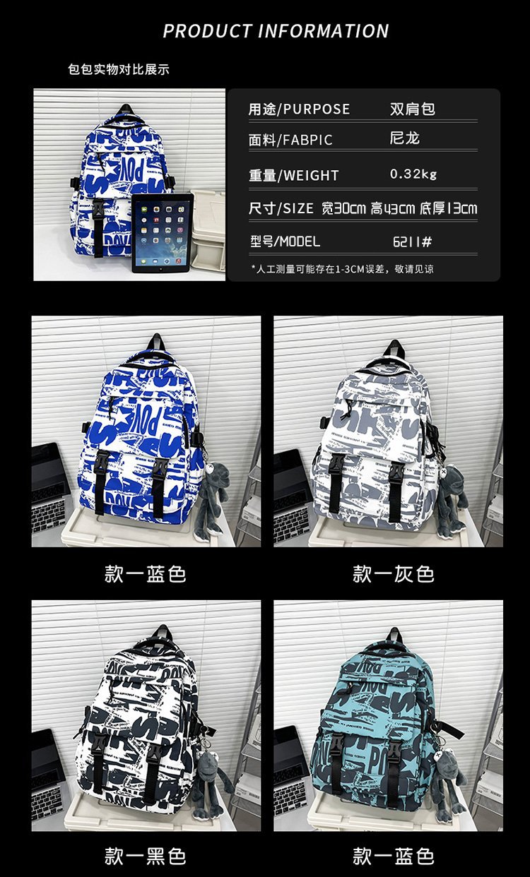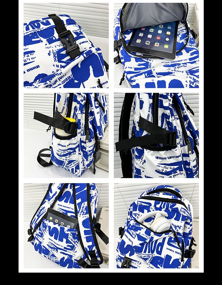 새로운 Ins 개인화 된 패션 낙서 높은 색상 가치 대용량 Schoolbag 중학교 고등학교 고등학교 학생 배낭스토어 가기