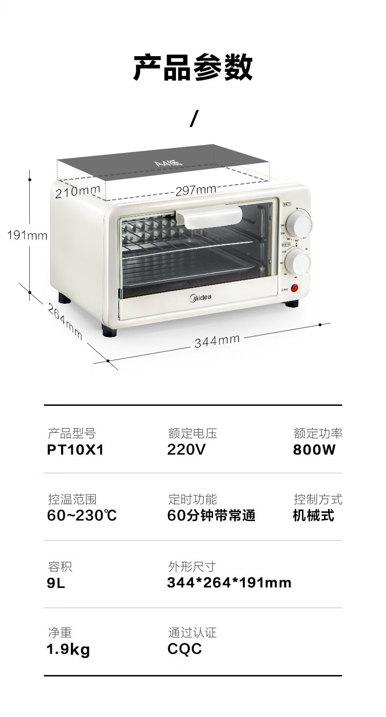 Midea PT10X1 다기능 가정용 미니 오븐 전기 오븐 케이크 굽기 9L스토어 가기