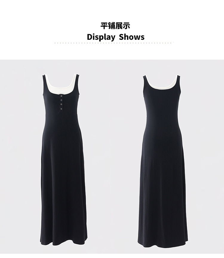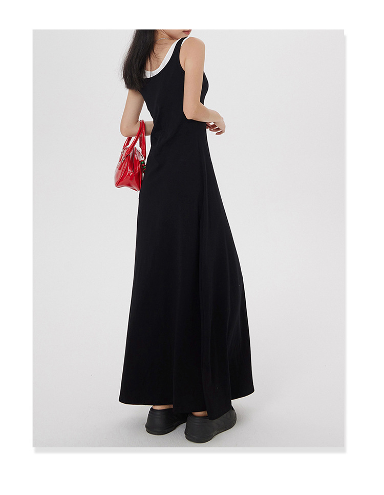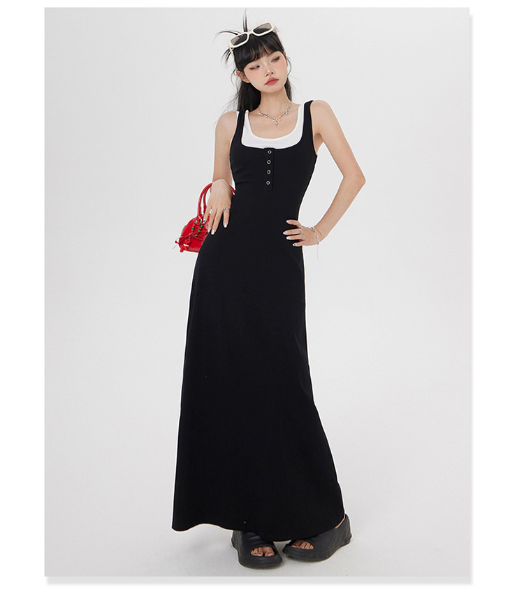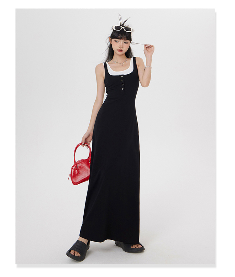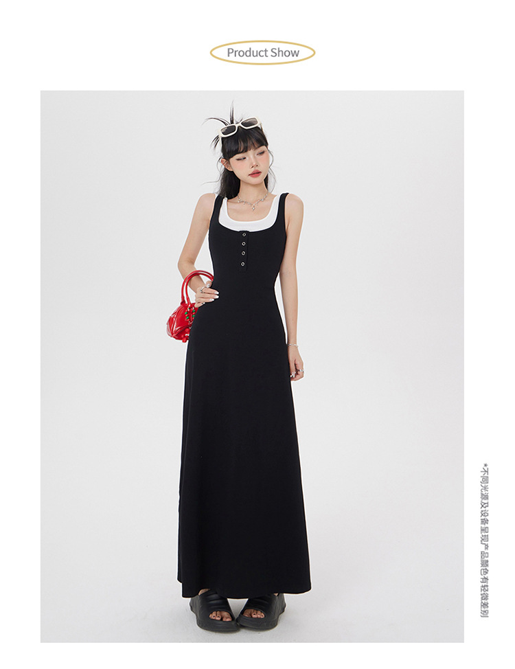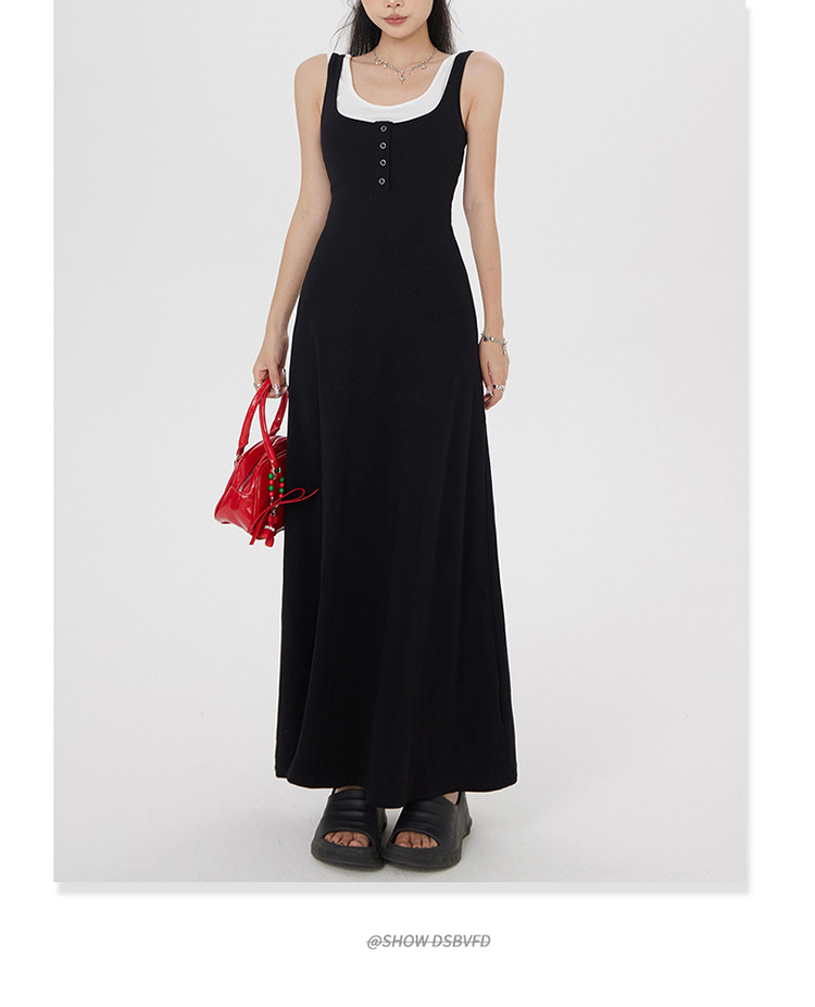 가짜 투피스 블랙 슬링 원피스 어린이 여름 2024 새로운 배 모양의 그림 프랑스 스타일 우아한 조끼 긴 원피스스토어 가기