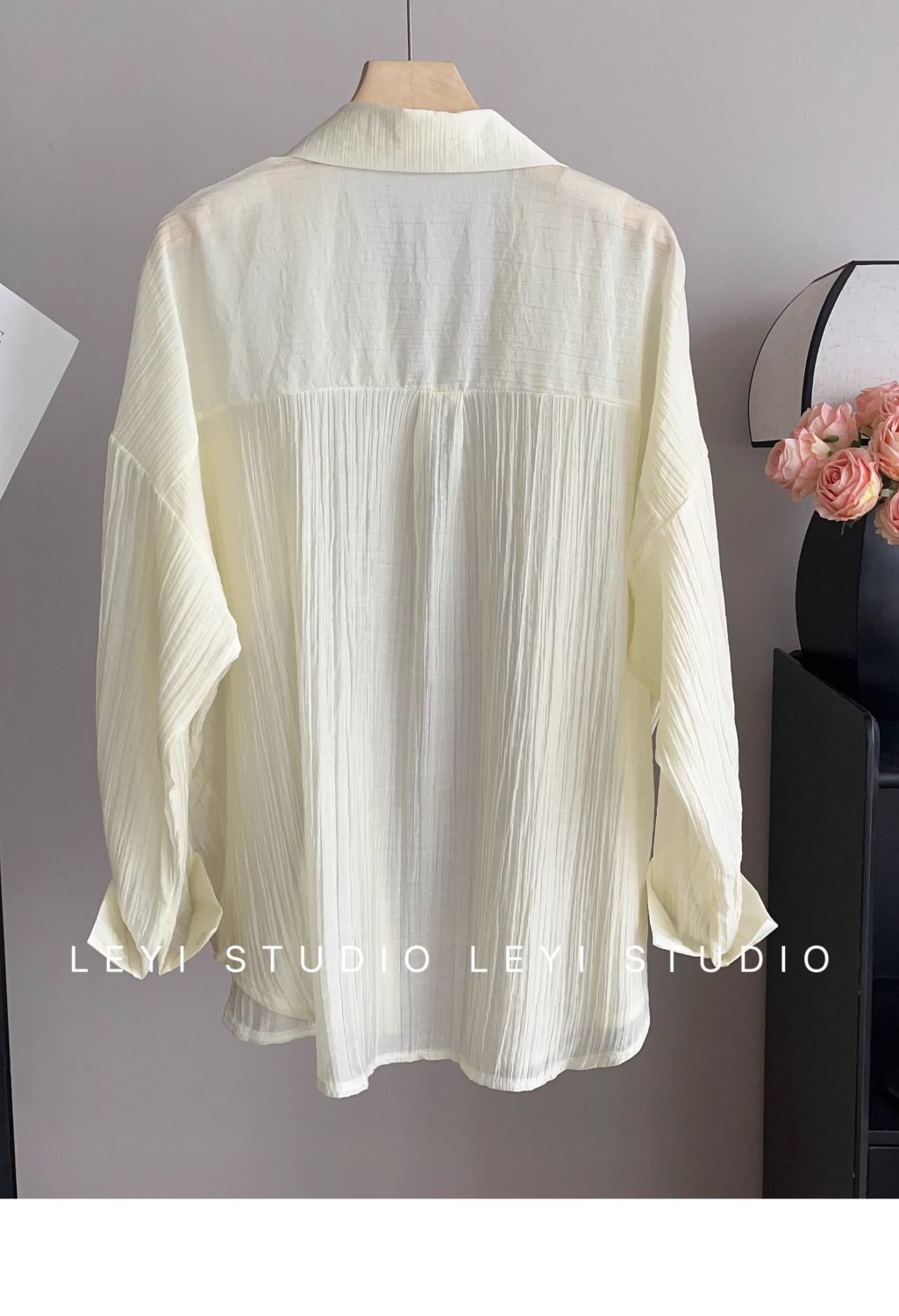 텐셀 주름 다목적 패션 태양 보호 의류 2024 여름 새로운 여성 셔츠 느슨한 슬리밍 대형 에어컨 외부 셔츠