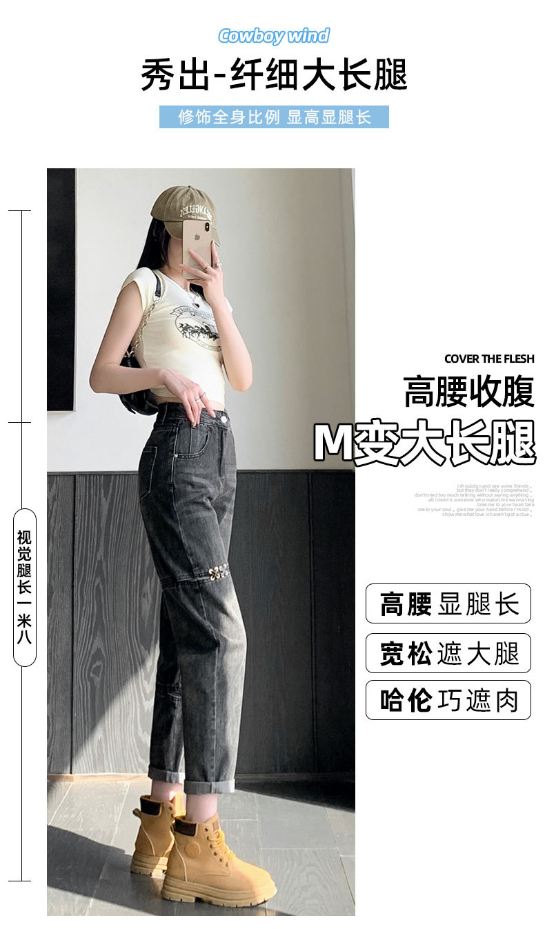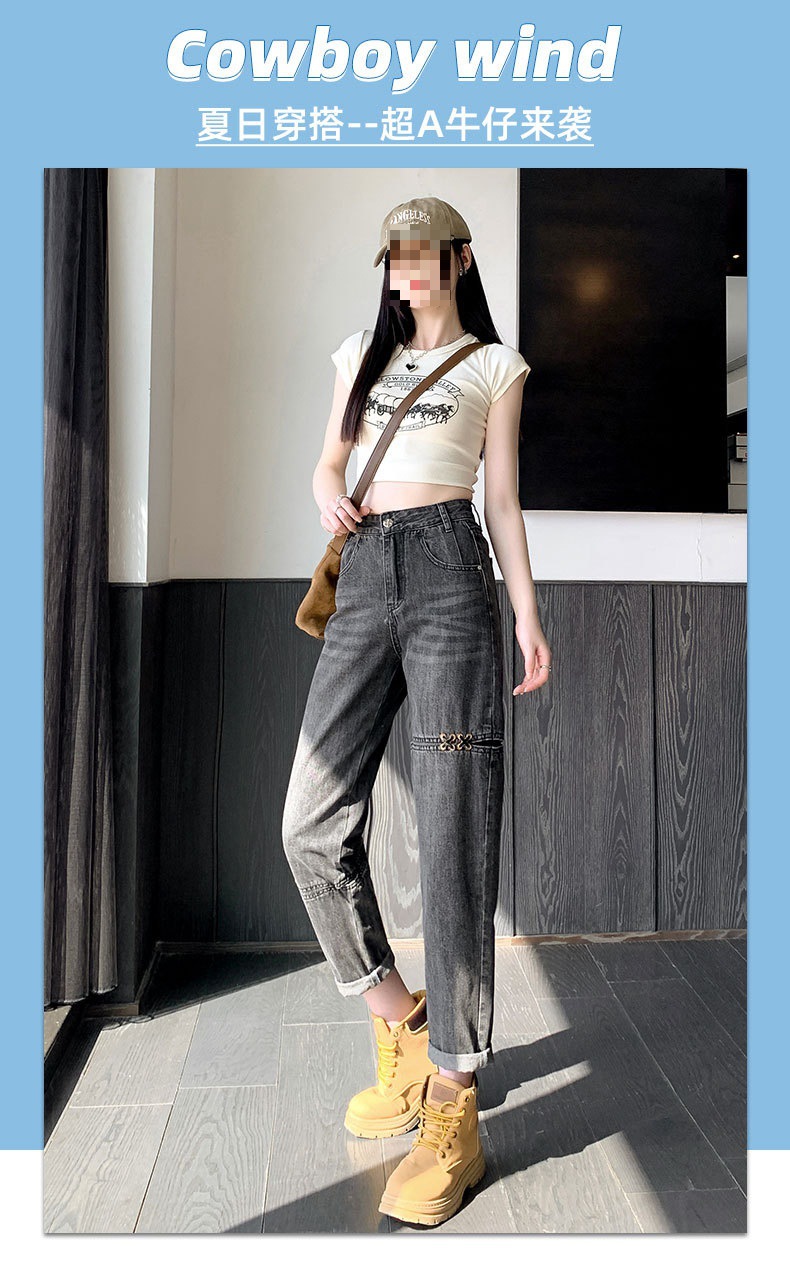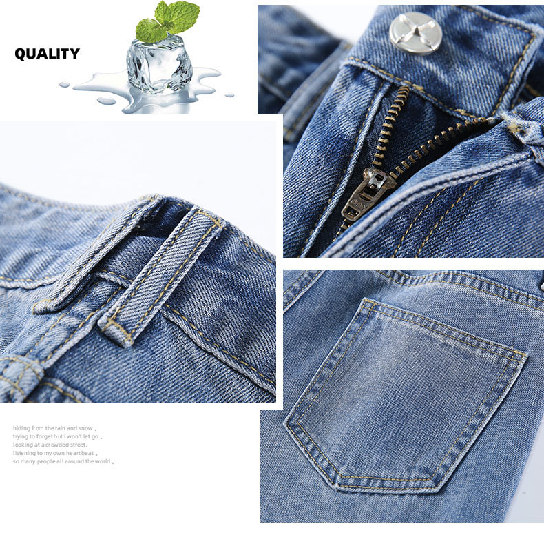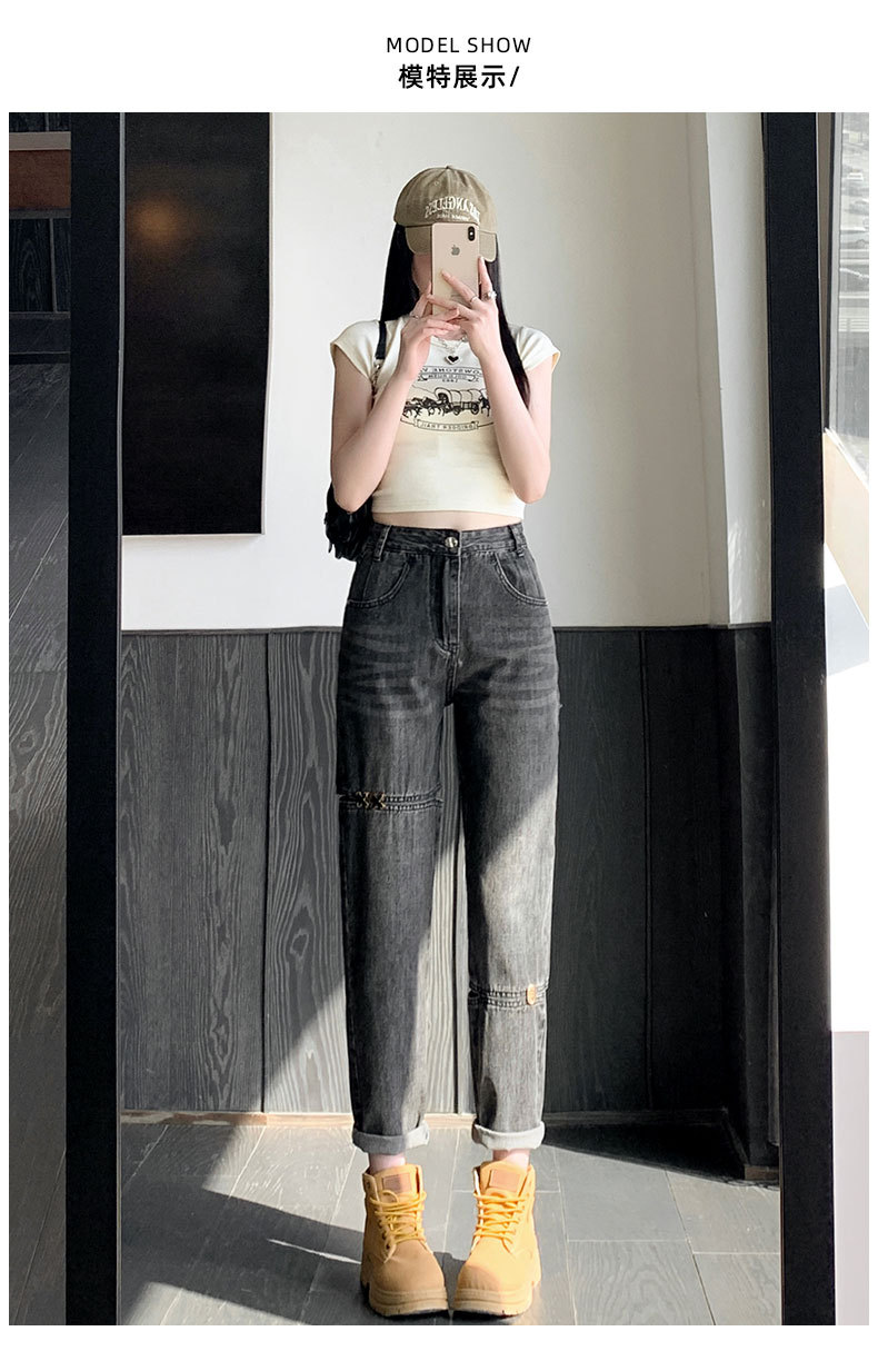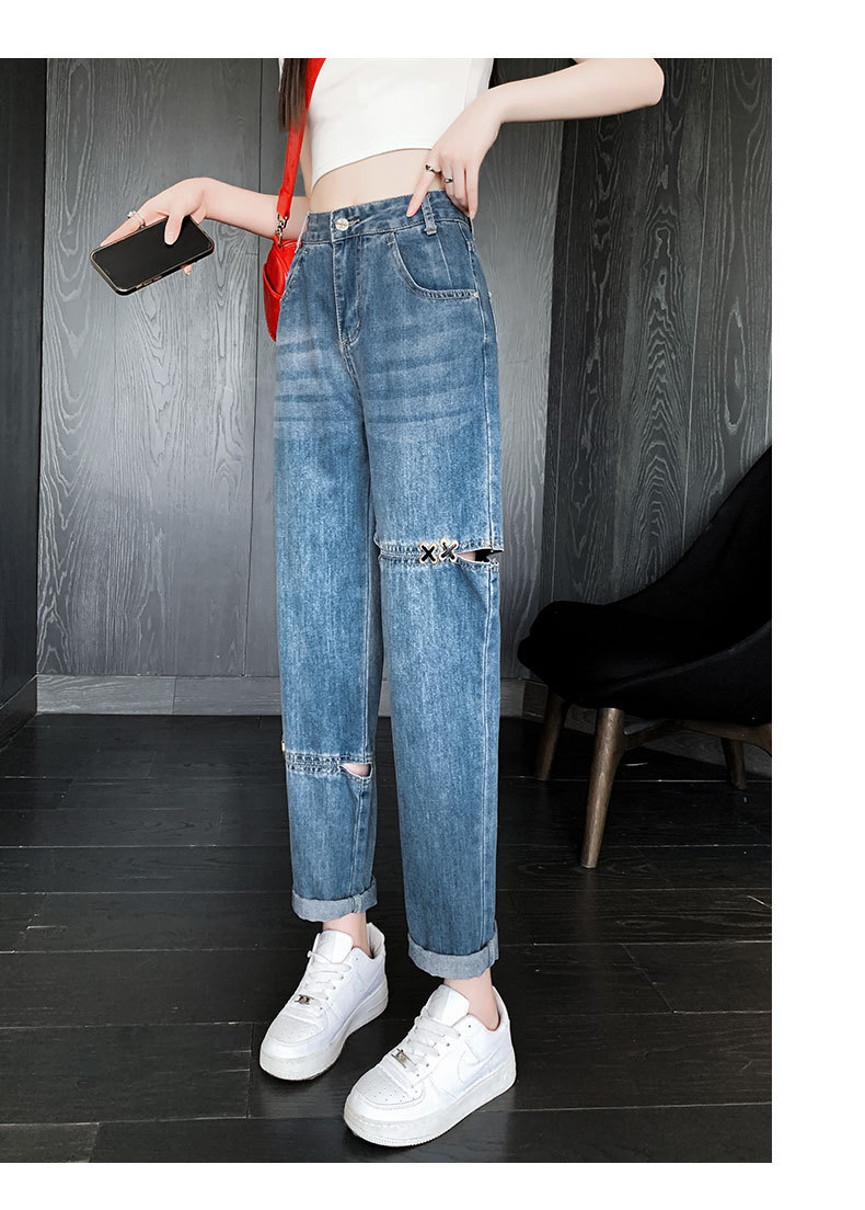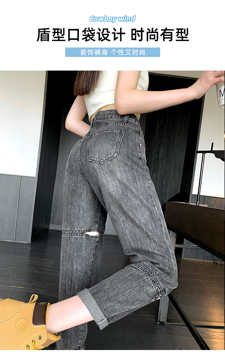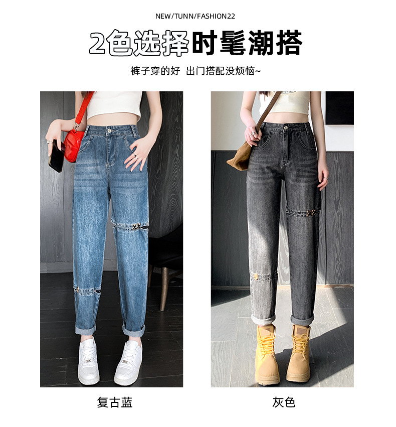 불규칙한 찢어진 청바지 여자 여름 얇은 높은 허리 거지 레트로 넓은 다리 느슨한 슬리밍 할란 아빠 바지스토어 가기