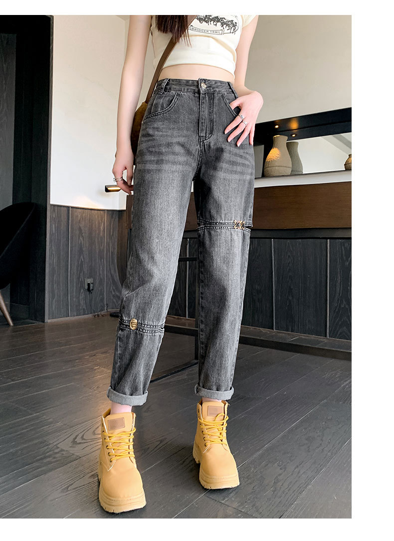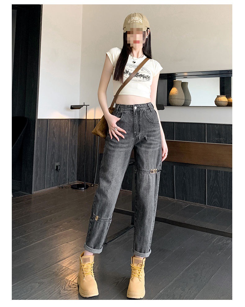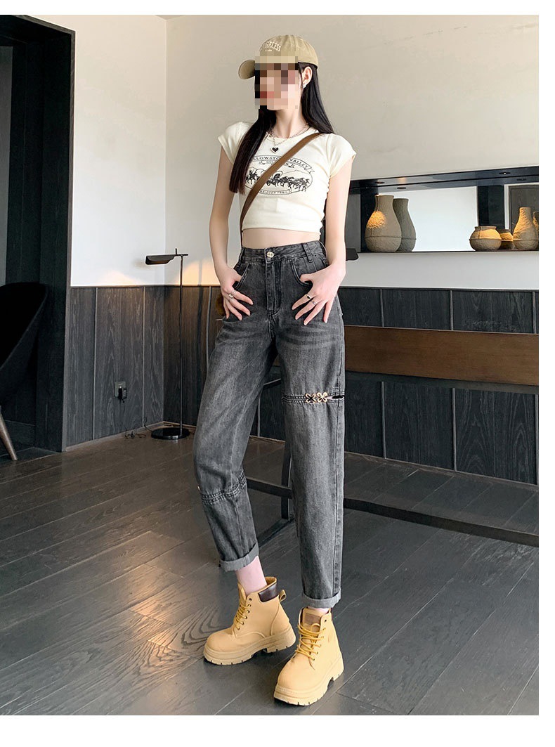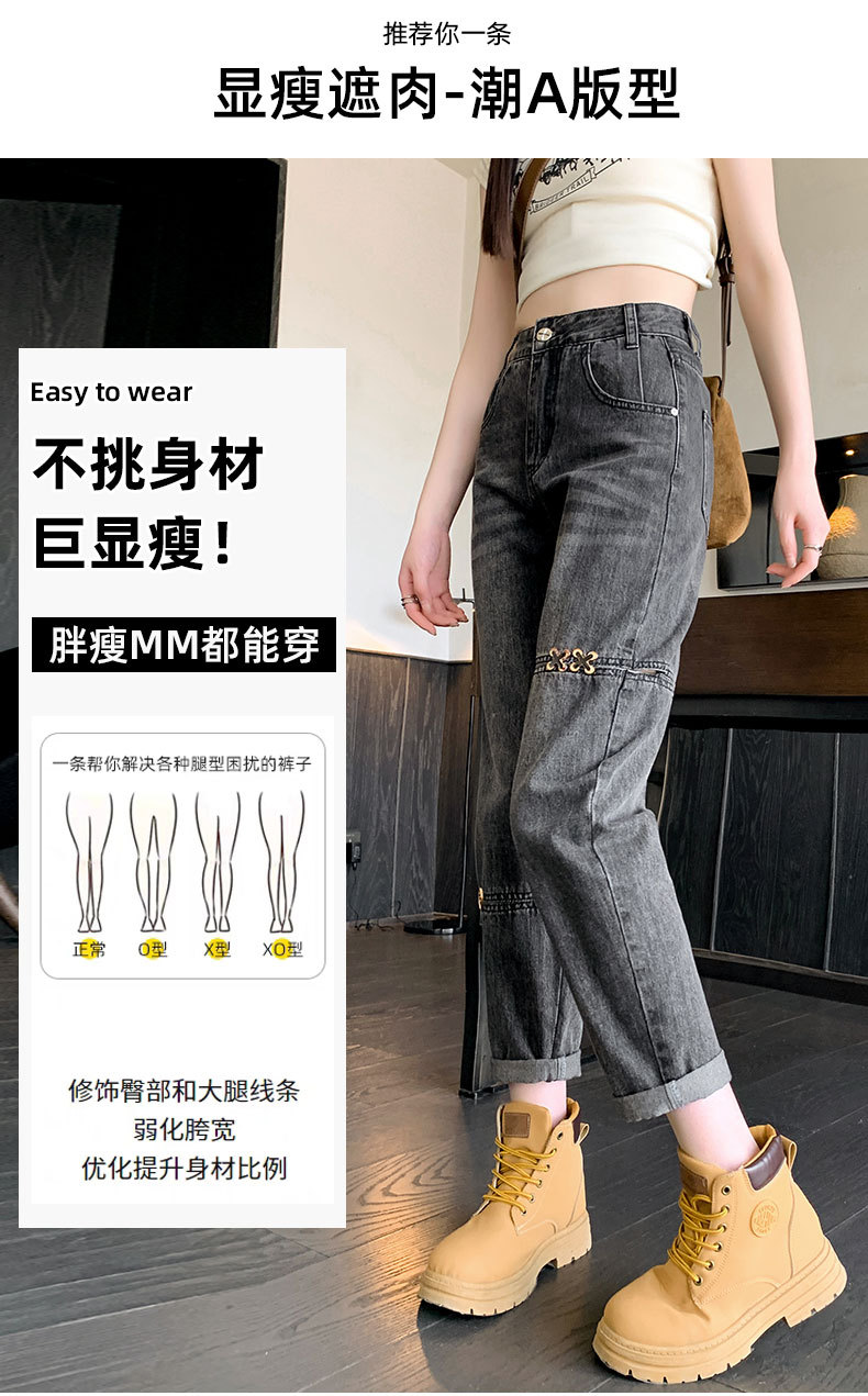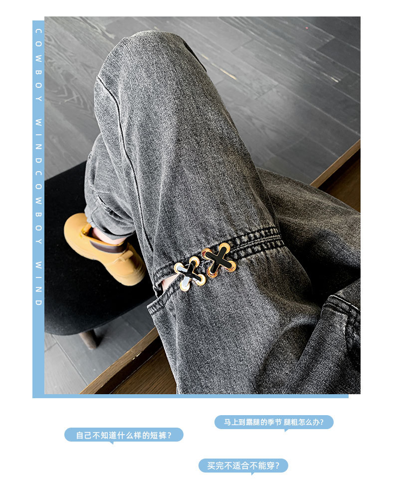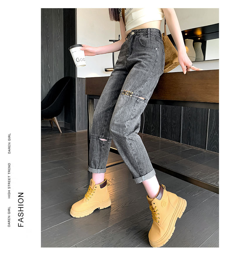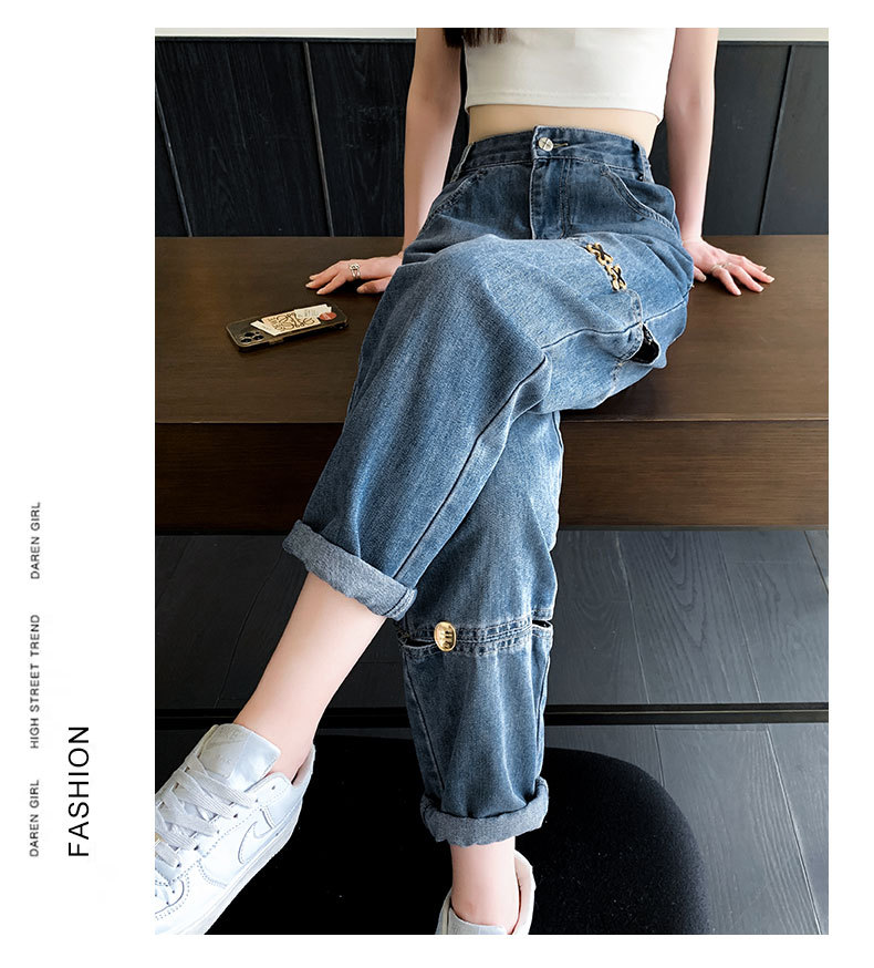 불규칙한 찢어진 청바지 여자 여름 얇은 높은 허리 거지 레트로 넓은 다리 느슨한 슬리밍 할란 아빠 바지스토어 가기