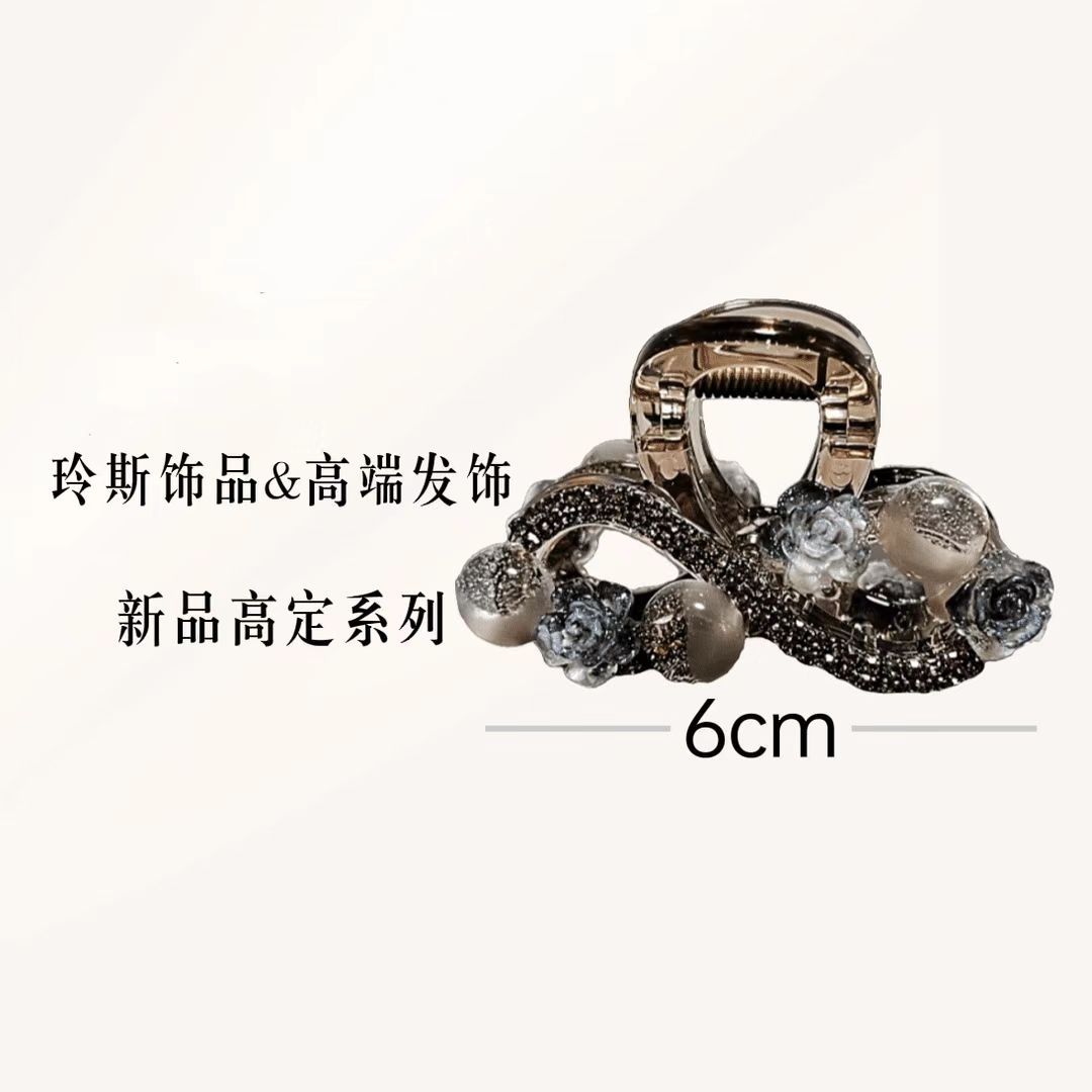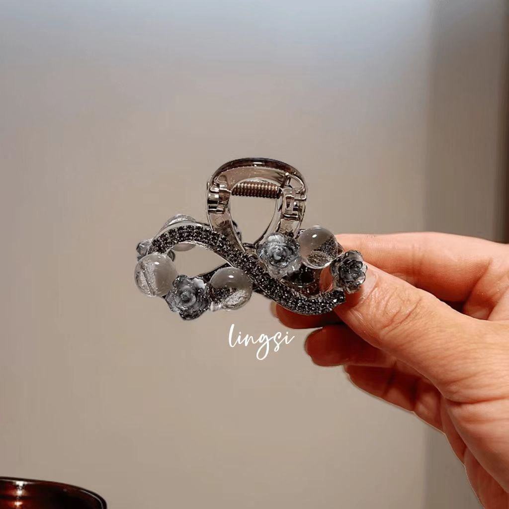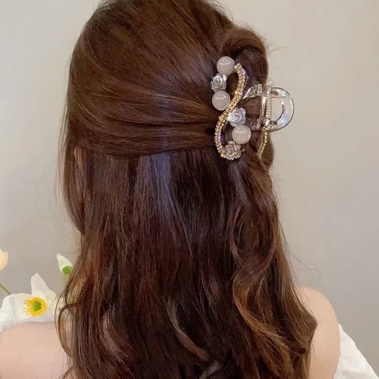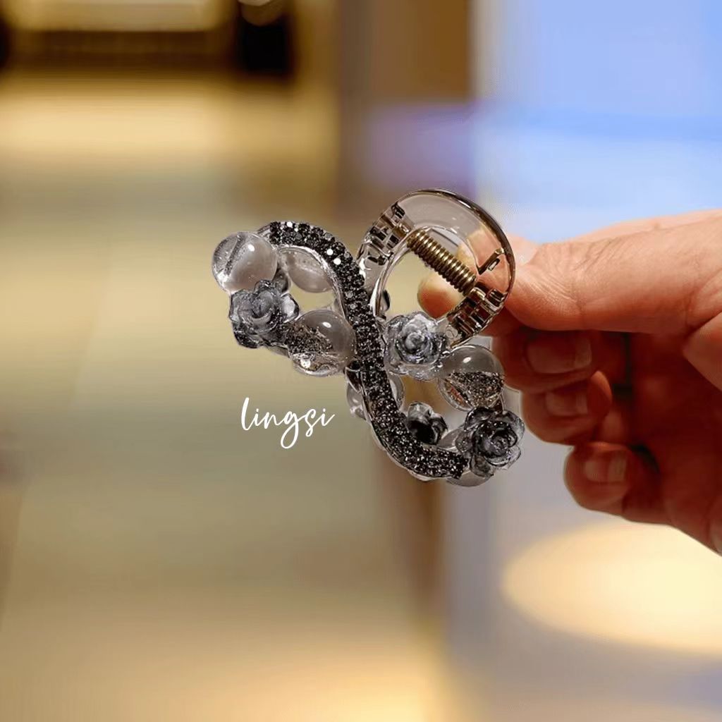 L1017 고급 라인스톤 플라워 헤어핀 백 헤드 디스크 헤어 그랩 클립 여름 중간 하프 타이 상어 클립 헤드웨어