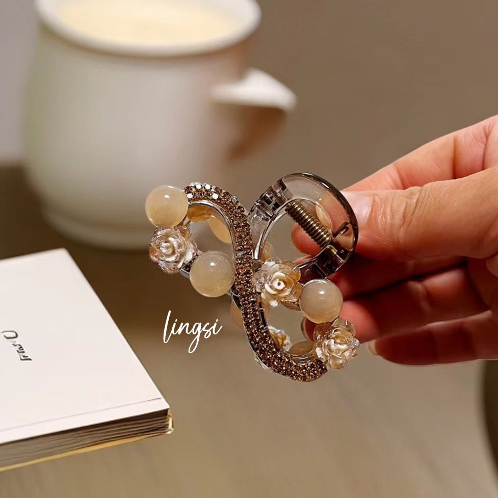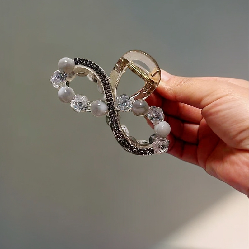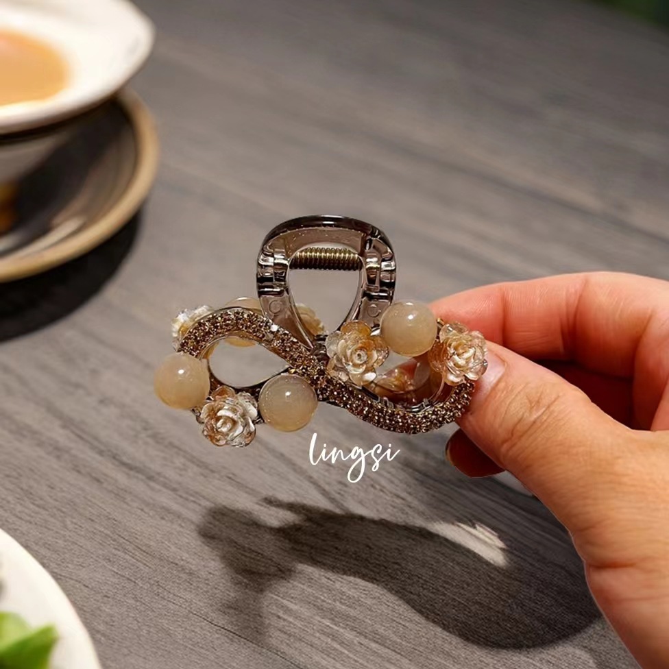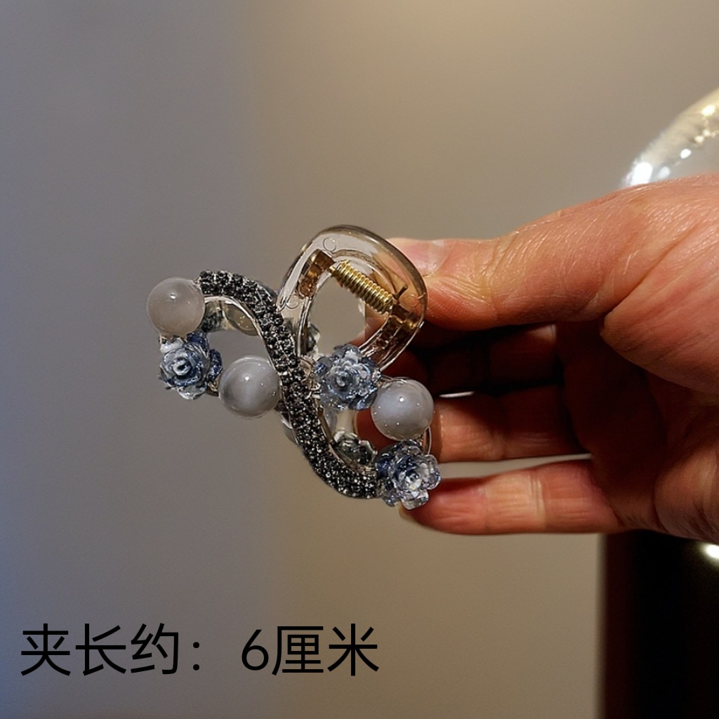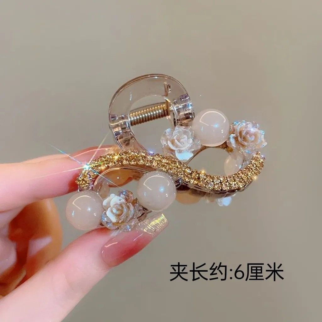 L1017 고급 라인스톤 플라워 헤어핀 백 헤드 디스크 헤어 그랩 클립 여름 중간 하프 타이 상어 클립 헤드웨어