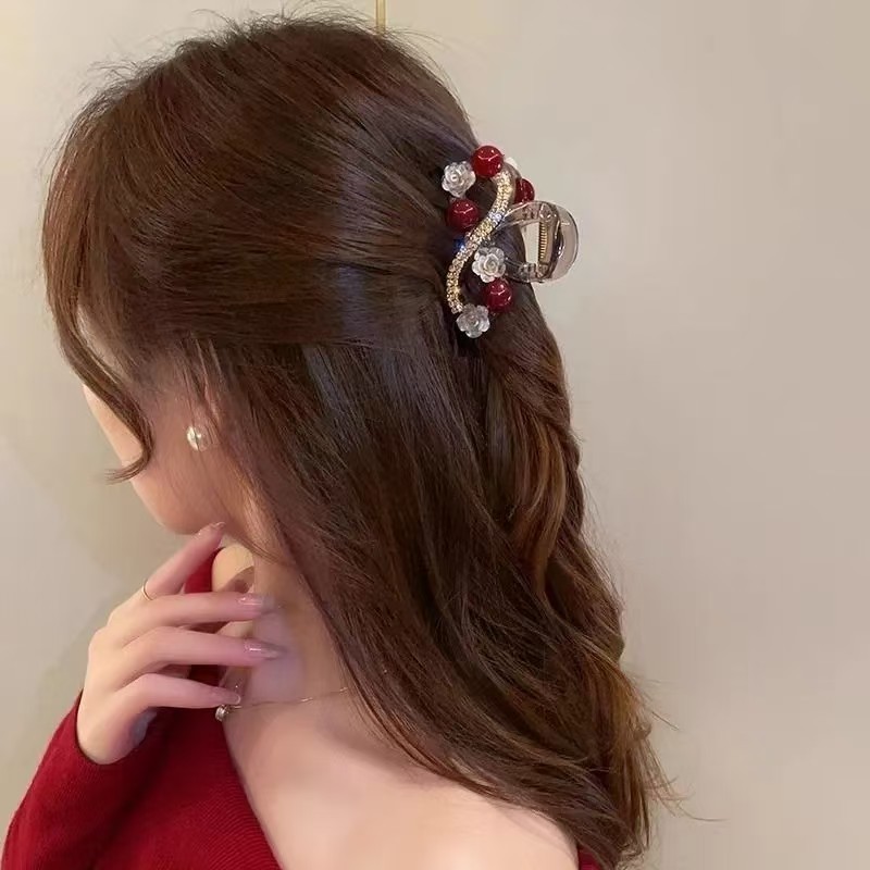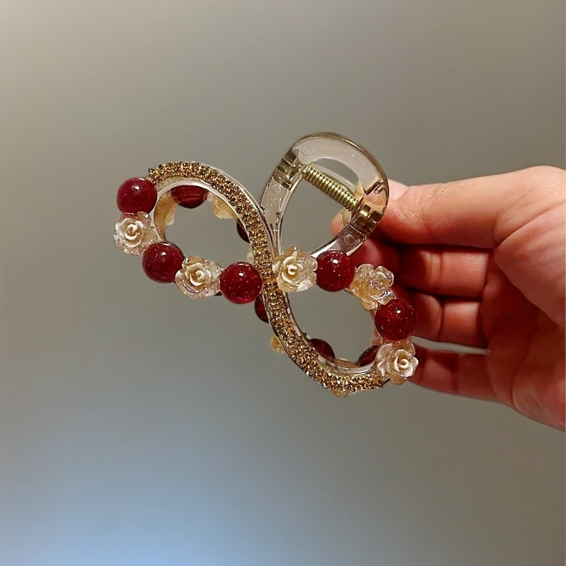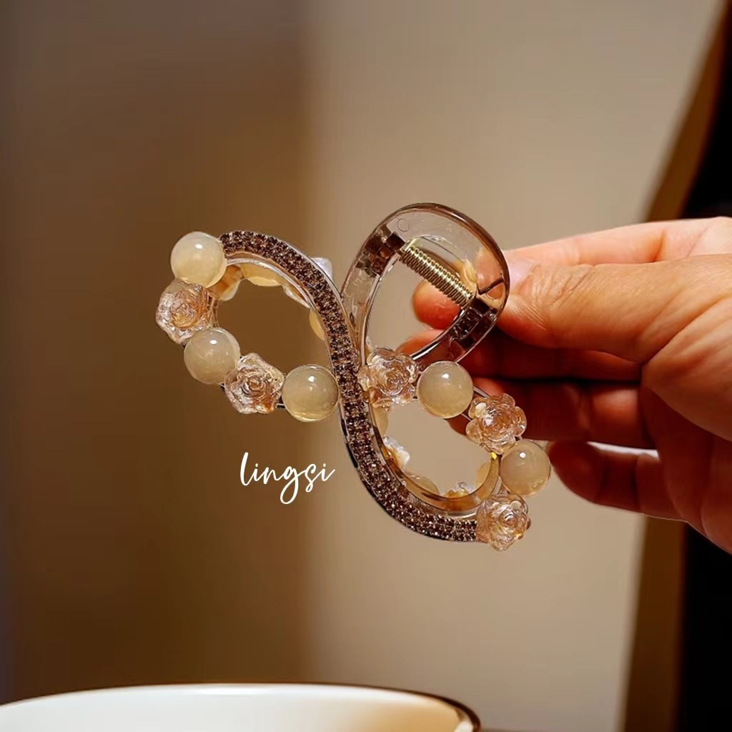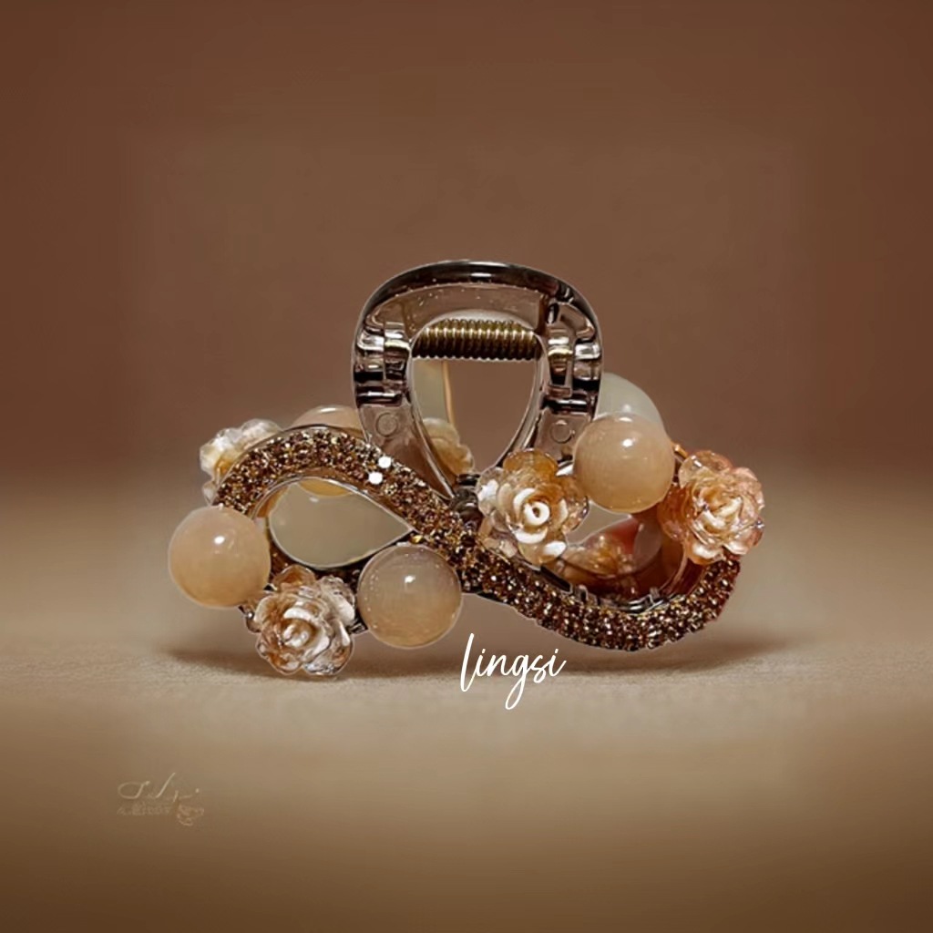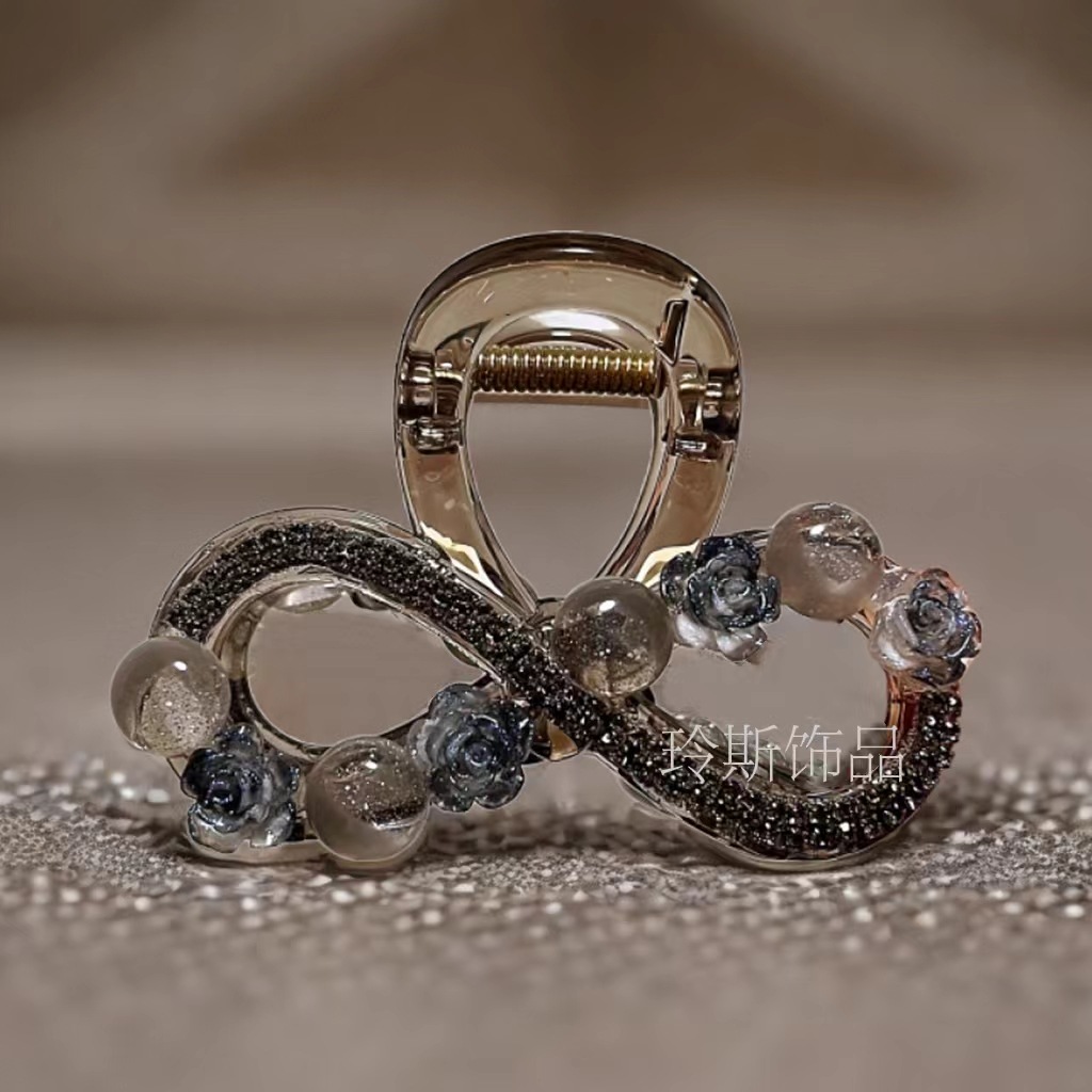 L1017 고급 라인스톤 플라워 헤어핀 백 헤드 디스크 헤어 그랩 클립 여름 중간 하프 타이 상어 클립 헤드웨어