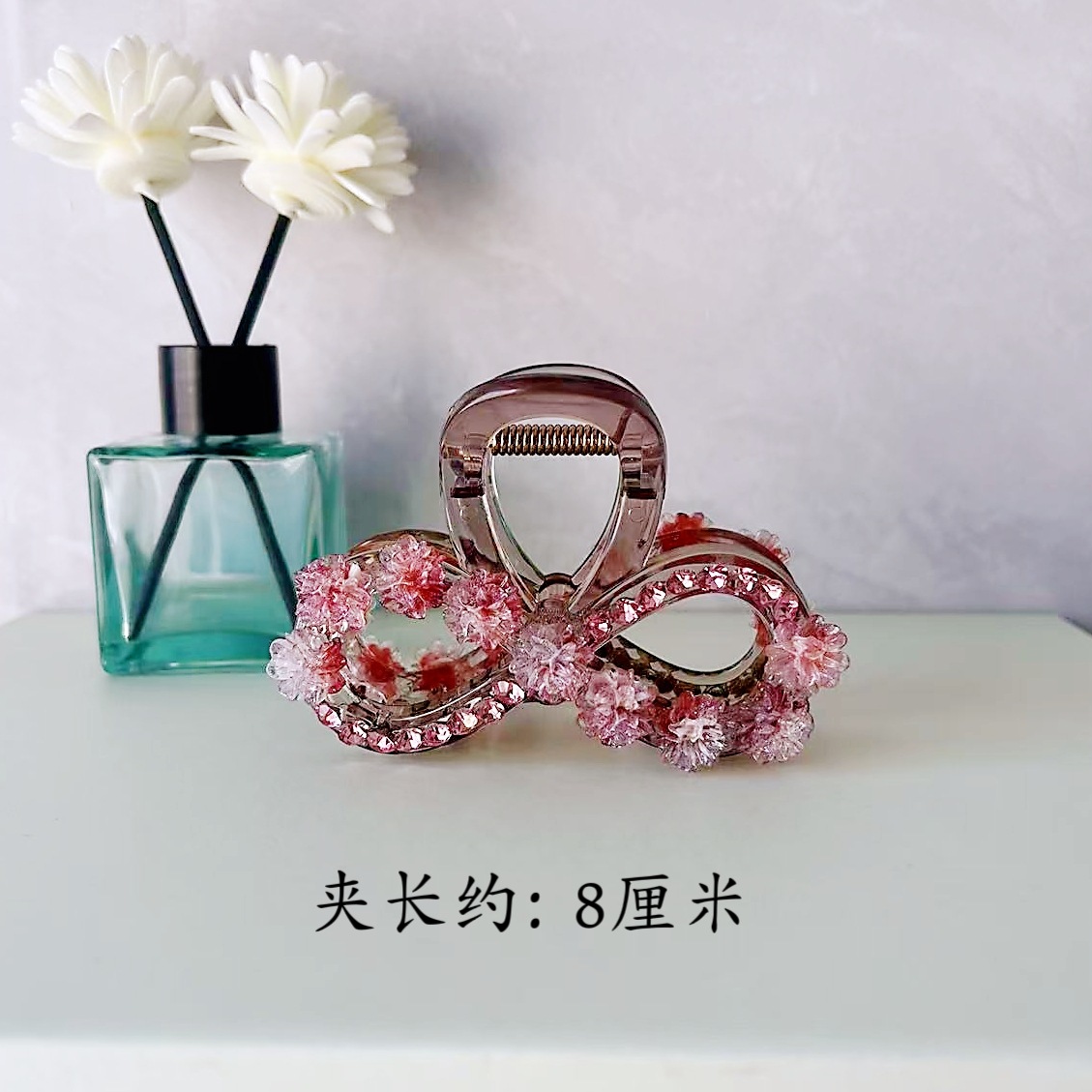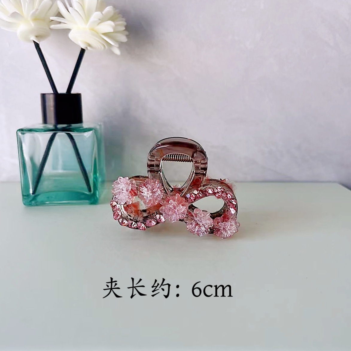 • L1061 핑크다이아몬드 핑크플라워 소형 PC (클립길이 약 6cm)